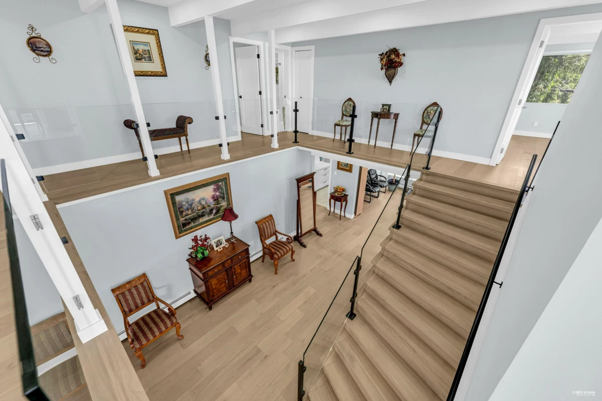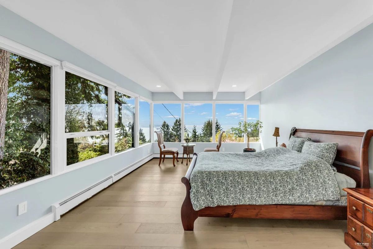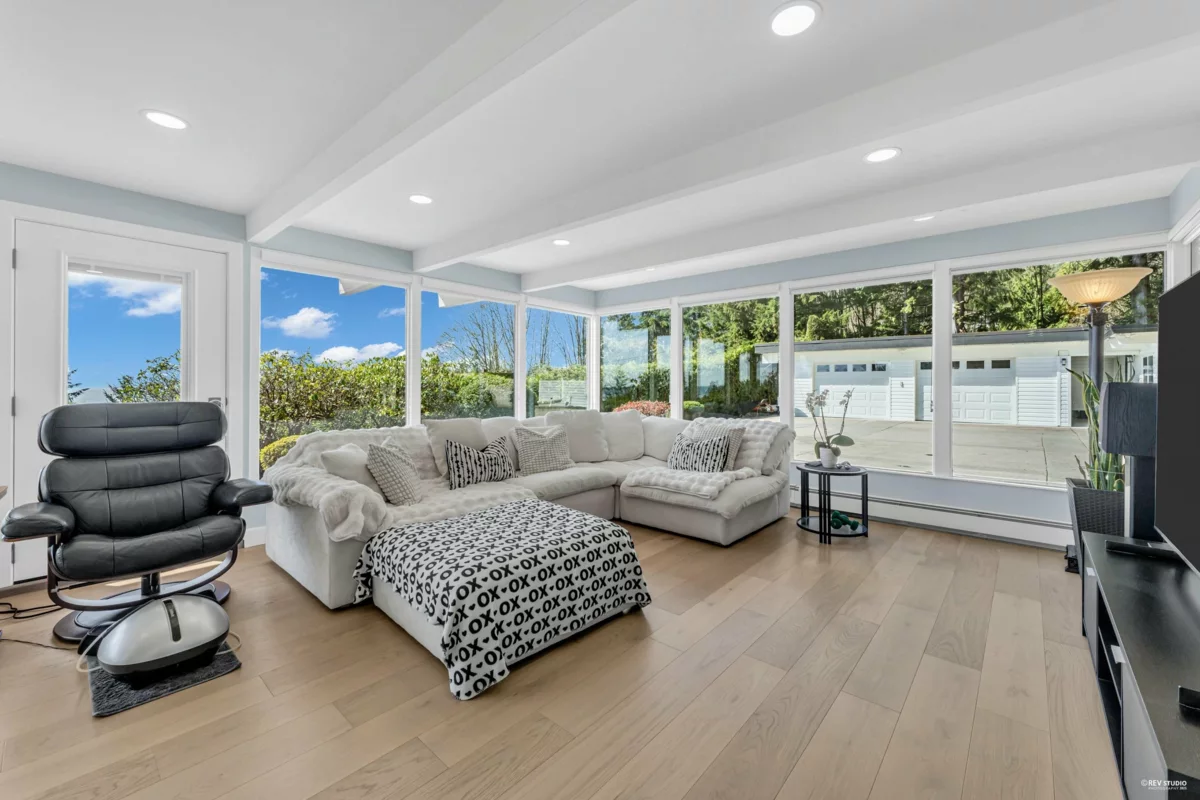 Experience breathtaking panoramic ocean and city views from this private estate, perfectly situated at the end of a quiet cul-de-sac. This completely renovated, custom built Lewis Post & Beam home is designed to maximize natural light with expansive windows on both levels framing unobstructed views. The main level features a grand formal living and dining room, kitchen, spacious recreation room, and executive style office. Upstairs boasts an exceptionally large family room and four well proportioned bedrooms for ideal family living. A private entry space with full kitchen offers potential as a self contained studio, while a fully separate one bedroom suite serves as a valuable mortgage helper. Plenty of parkings. Close to prestigious Collingwood School.