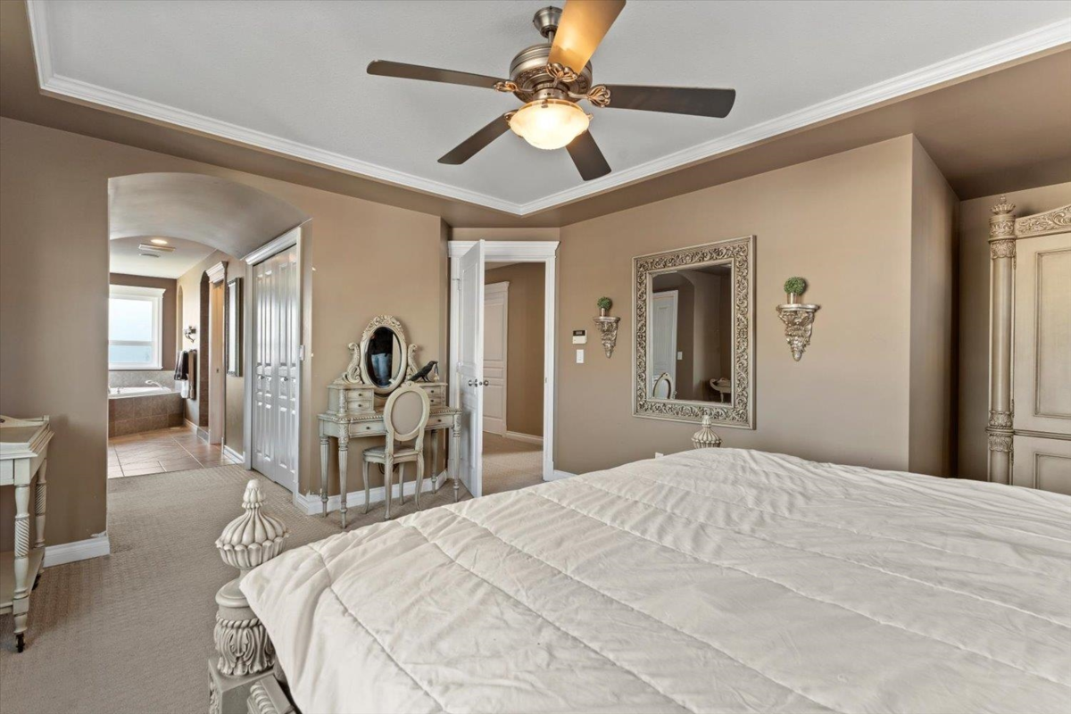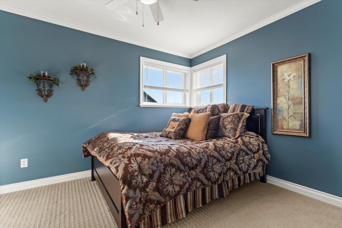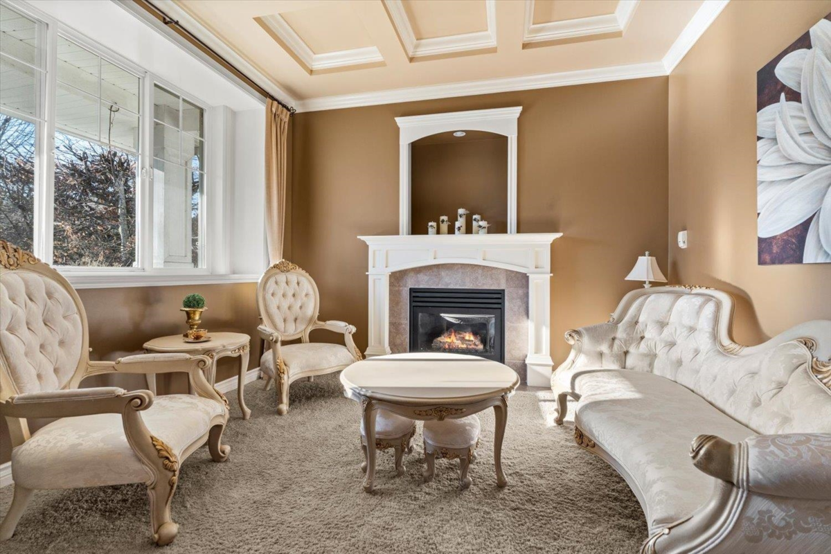 Absolutely stunning custom-built home showcasing exceptional craftsmanship and true showroom condition. Timeless architectural details including elegant archways and coffered ceilings throughout create a refined and upscale feel from the moment you walk in. The show-stopping kitchen features a large island, generous eating area, and flows seamlessly into the family room with a cozy gas fireplace and custom cabinetry, perfect for everyday living and entertaining. Upstairs offers a spacious primary retreat with a spa-inspired ensuite featuring a soaker tub and walk-in tiled shower, plus two additional bedrooms and a full 4-piece main bathroom. The fully finished lower level features a self-contained suite with separate entrance, ideal for extended family or as a mortgage helper.