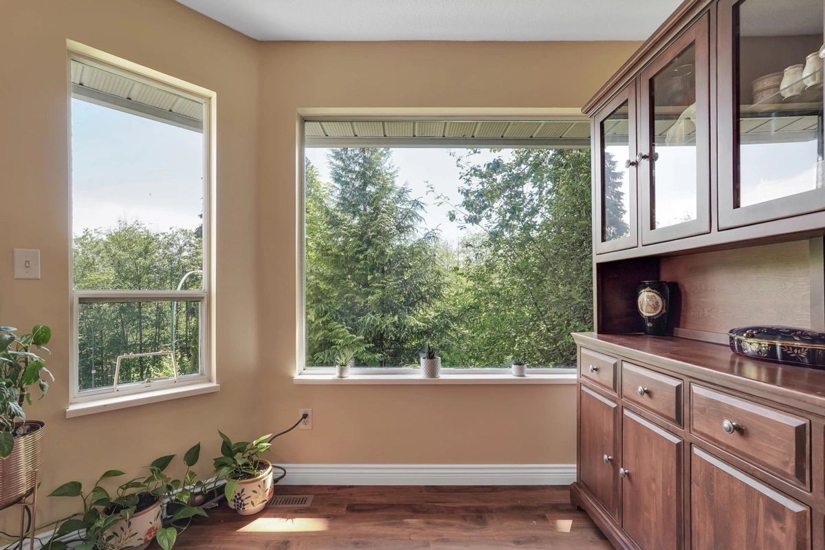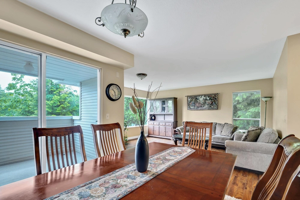 Welcome home to this spacious END UNIT townhome! Centrally located, just steps to Coquitlam Centre, Skytrain, Lafarge Lake, schools, restaurants & shopping. Main floor entry with marble tile throughout the foyer, kitchen, and powder room. Enjoy treed views out every window and a south-facing sun deck. Updates include laminate flooring, bathrooms, furnace in 2018 & hot water tank in 2025. Spacious primary bedroom with ensuite & soaker tub. Downstairs features a large rec room (could be used as 4th bedroom or office), 3 storage rooms & laundry room. Walk out to your private, fully fenced backyard. Located at the end of the complex, with trees & no neighbours to your West. Well maintained strata. 2 pets allowed, any size!