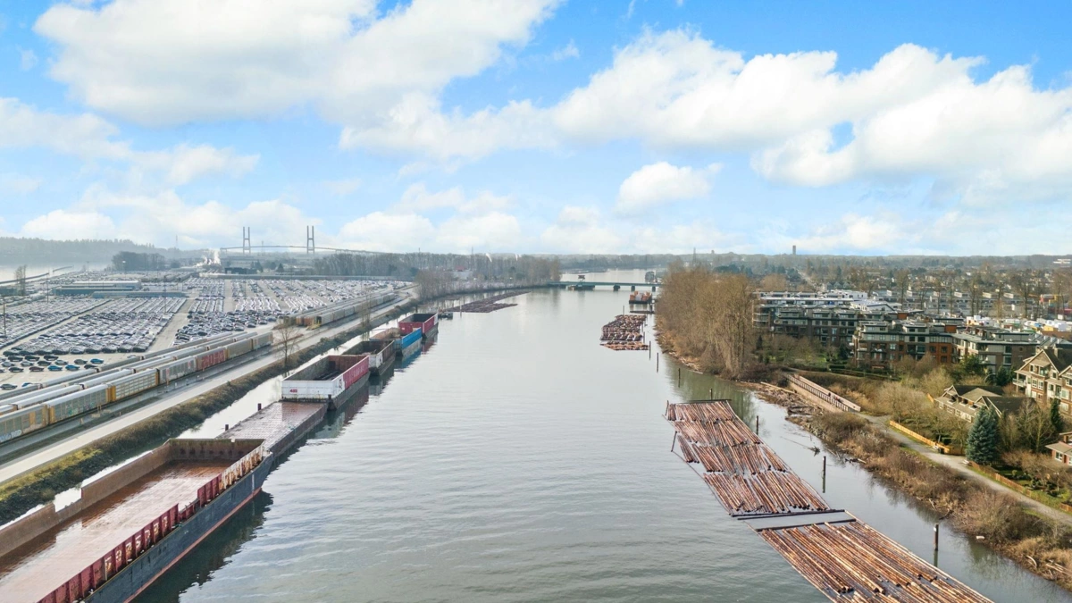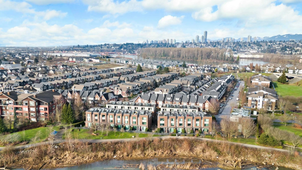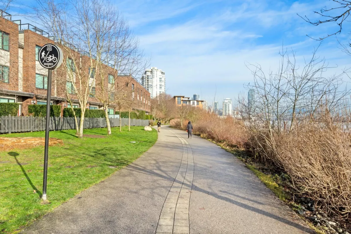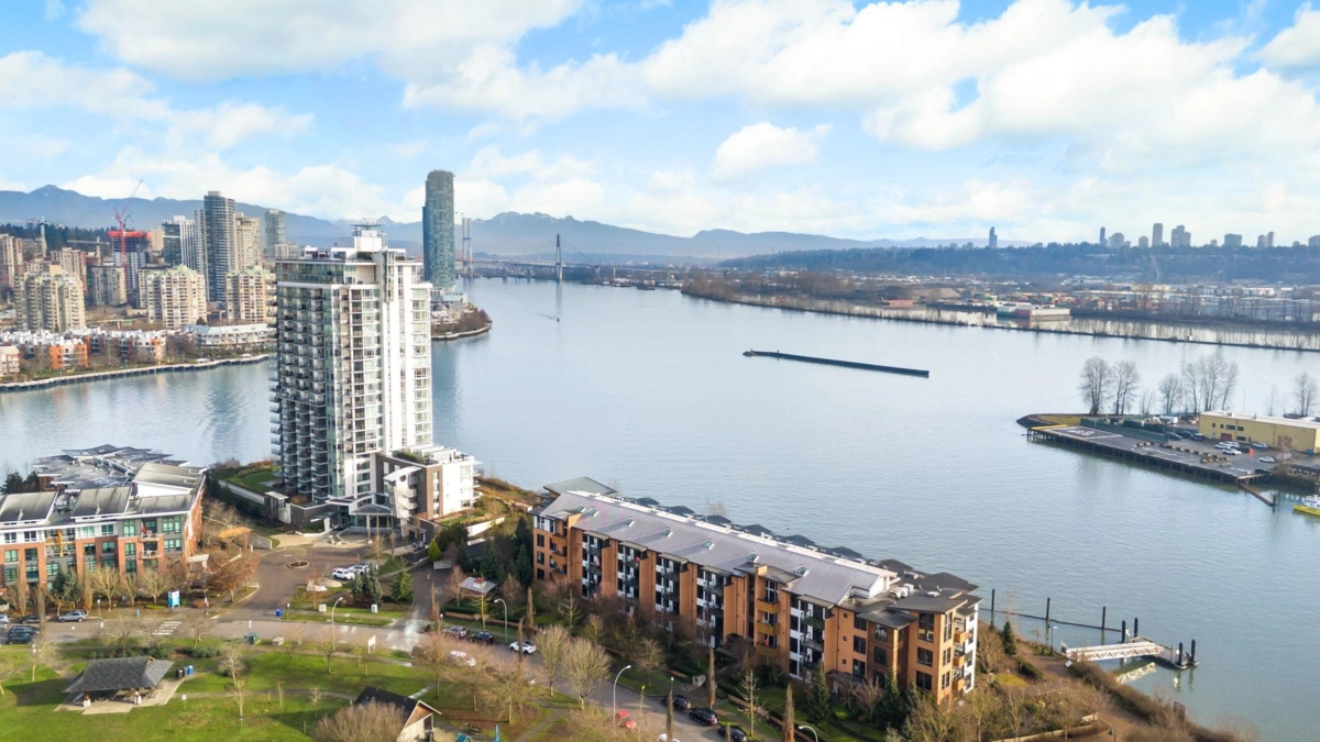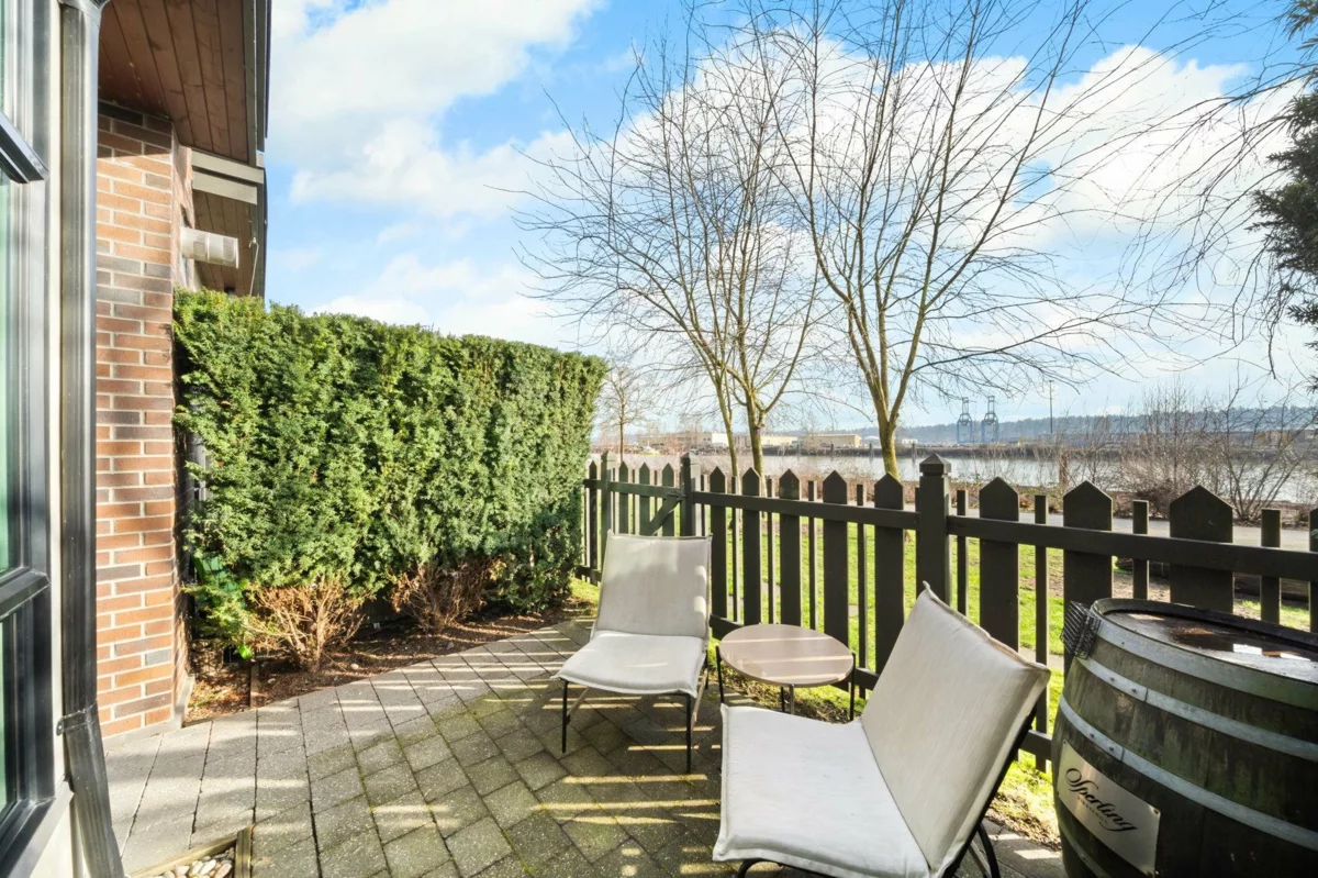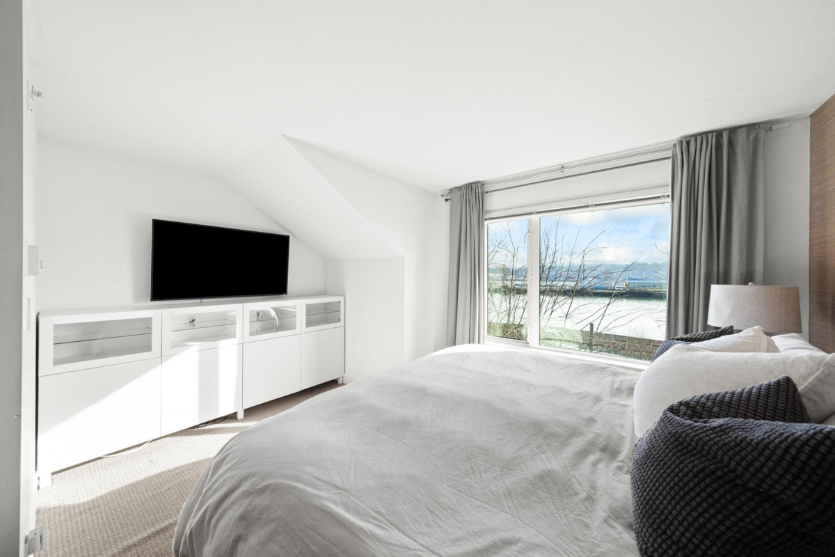 Wake up to river & mountain views in Port Royal, one of the Lower Mainland’s best-kept secrets. This stylish waterfront townhouse features hardwood flooring, top-of-the-line appliances, and a sleek kitchen with quartz countertops, gas cooktop, & drop-down range hood. Sunken living & dining areas offer elegant separation w/ a gas fireplace and modern brick accent wall. The second level offers 2 bdrms and a full bath with soaker tub, while the entire third level is a private primary retreat w/ ensuite & heated flooring. Enjoy both a ground-level fenced private patio & a private rooftop patio, watch tugboats glide by, and take in the ever-changing scenery. Walking trails at your door, plus playground & shopping nearby. Steps to Port Royal Park & the Quay Ferry to SkyTrain. 2 parking + locker.