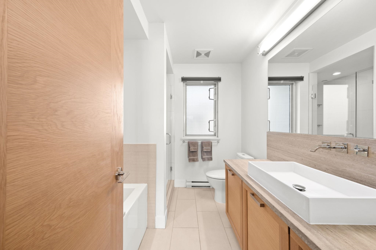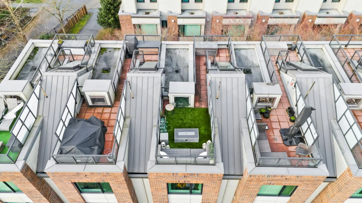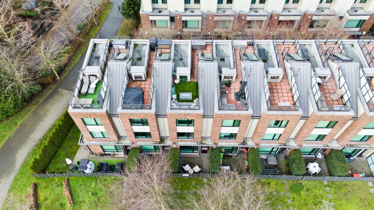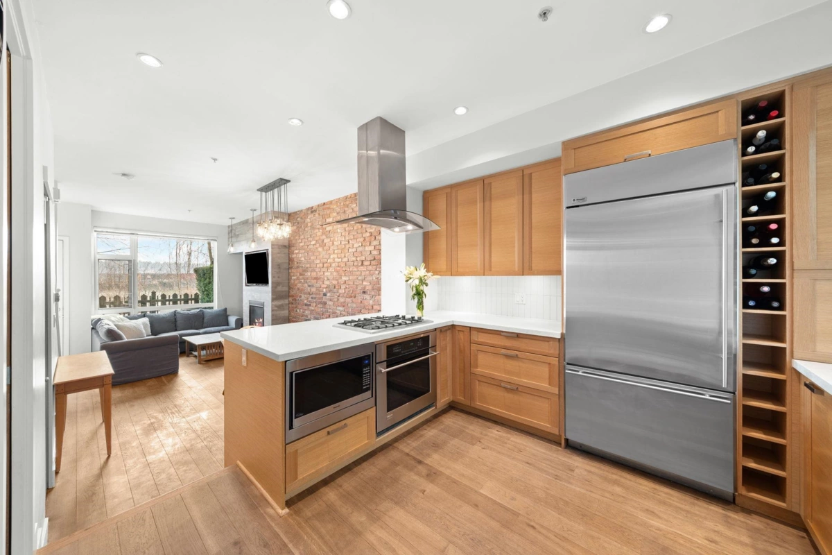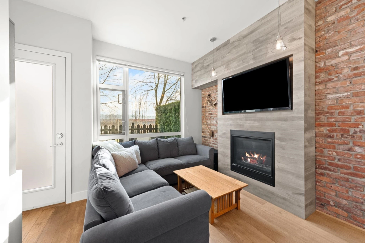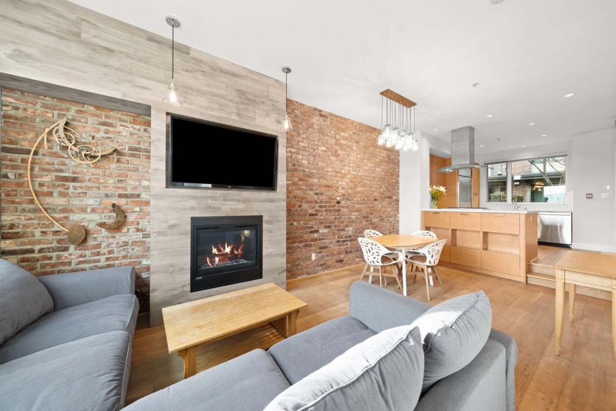 Wake up to river & mountain views in Port Royal, one of the Lower Mainland’s best-kept secrets. This stylish waterfront townhouse features hardwood flooring, top-of-the-line appliances, and a sleek kitchen with quartz countertops, gas cooktop, & drop-down range hood. Sunken living & dining areas offer elegant separation w/ a gas fireplace and modern brick accent wall. The second level offers 2 bdrms and a full bath with soaker tub, while the entire third level is a private primary retreat w/ ensuite & heated flooring. Enjoy both a ground-level fenced private patio & a private rooftop patio, watch tugboats glide by, and take in the ever-changing scenery. Walking trails at your door, plus playground & shopping nearby. Steps to Port Royal Park & the Quay Ferry to SkyTrain. 2 parking + locker.