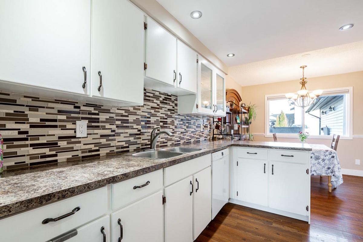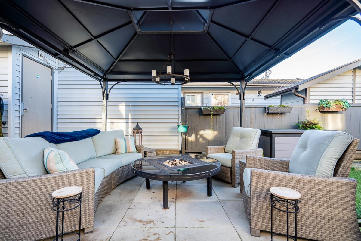 This beautifully updated 3 bdrm, 2 bath townhome is full of charm and sure to impress! The kitchen features a stone backsplash and new appliances, while the rock and stone fireplace creates a warm, inviting space for cozy evenings. A custom pantry adds excellent storage, and the main bathroom offers a double vanity and a relaxing soaker tub. Enjoy both front and back decks, plus a large, fully landscaped, fenced backyard with a waterfall pond, certified natural gas BBQ hookup, and convenient rear lane access. A new hot water tank adds peace of mind, and the one-car garage includes ceiling-mounted shelving on both sides and additional under-stair storage. Don’t miss this one, book your showing today!