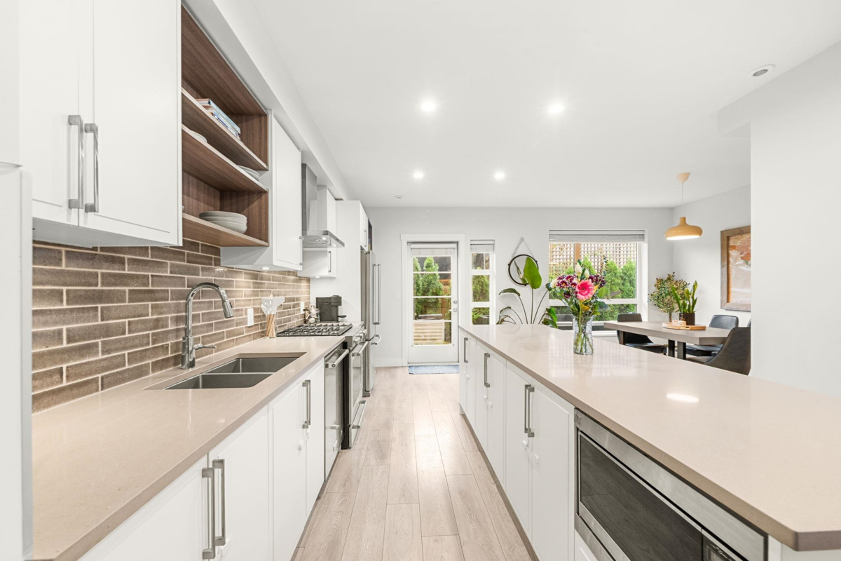 Cedar Ridge - 3 bed + den, 3 bath 1634sf CORNER Unit w/ fantastic open concept floorplan! One of the best layouts in the complex feat large kitchen w/quartz counters, gas range, custom cabinets incl pantry, spacious living & dining rooms w/wide plank laminate floors, 9ft ceilings, tons of windows & natural light, oversized wrap around patio w/gas bbq outlet. 3 good sized beds up incl primary w/4 pce ensuite. Den/storage down, & large 2 car tandem garage w/tons of storage space. Forced air heat & A/C! One of Port Moody's most desired townhouse complexes/locations-short walk to Burquitlam skytrain, shopping, & a few minutes to all Port Moody's amenities:Rocky Point Park, Brewer's row, Newport & Suter Brook Village, Buntzen&Sasamat lake, hiking trails, all levels of schools. OH: Sun 3-5pm!