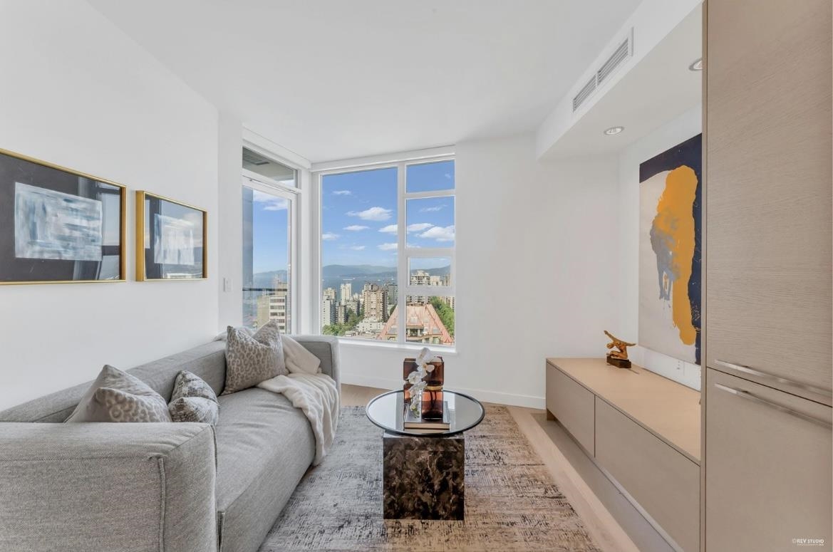 Luxurious 1 Bedroom at ONE BURRARD PLACE! Experience upscale urban living with stunning views of the mountains, Lions Gate Bridge, and English Bay. Features wide-plank hardwood floors, spa-inspired bathroom with heated stone floors, Italian cabinetry, Caesarstone counters, and GAGGENAU appliances with BOSCH washer & dryer. Enjoy the spacious W-facing balcony, ideal for morning coffee or an evening glass of wine while taking in the breathtaking views. Smart home system, air-conditioning. One parking, and bike locker . Residents have exclusive access to 30,000 sq.ft. of 5-Star ?CLUB ONE? amenities, featuring a 24-hour concierge,fitness centre, indoor pool, sauna/steam rooms, hot tub, yoga room, music & study room. A rare opportunity to own at Vancouver?s iconic ONE BURRARD PLACE!