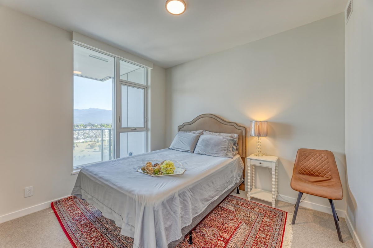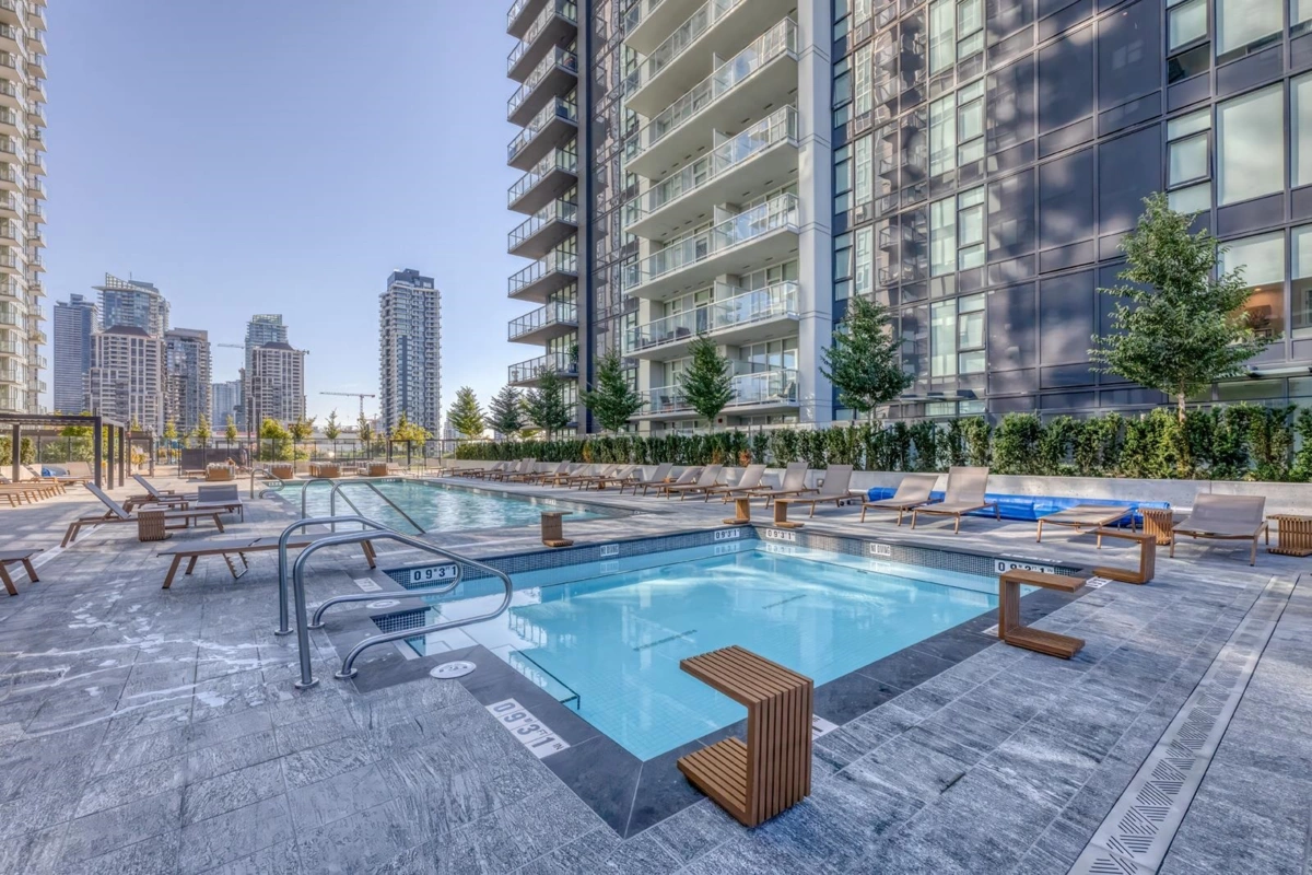 Gilmore Place Tower 3 by the Onni Group! This Air-conditioned North facing 2 bed 2 bath 945SF boasts BREATHTAKING city and mountain views, functional layout and high-end finishes throughout. Gourmet Kitchen with loads of cabinets and Center Island, Luxury Primary bedroom with walk-through closets and 5 pc Spa-inspired Ensuite. Huge covered deck for you to enjoy the Sunset! World-class amenities including a Fully equipped gym, pet wash station, bowling alley, golf simulator, karaoke rooms, guest suites, Outdoor/Indoor pools, theater, guest Suites, Outdoor BBQ and more. Steps from Gilmore SkyTrain Station and Brentwood Shopping Centre, surrounded by restaurants and coffee shops. Unit comes with 1 parking, 1 bike locker and 1 storage locker. Book your private showing today!