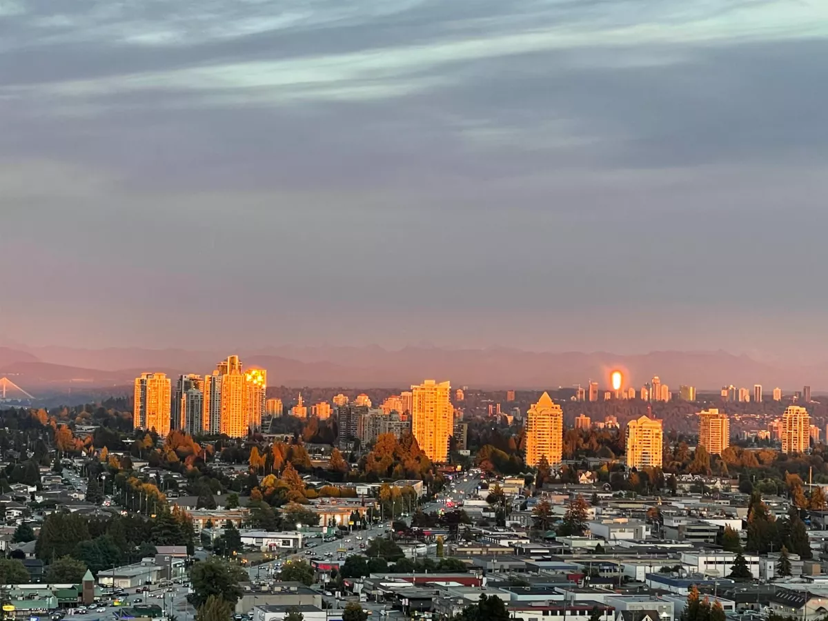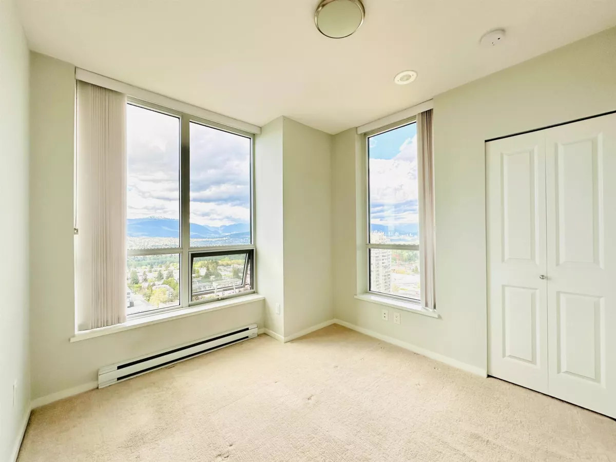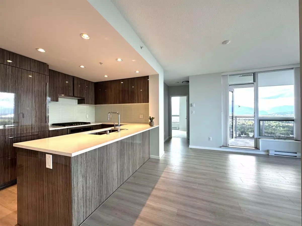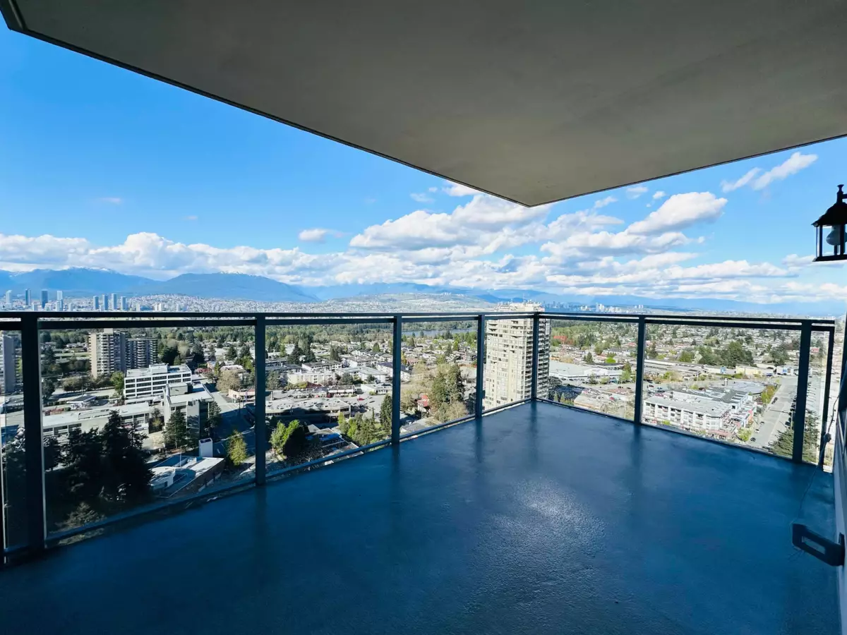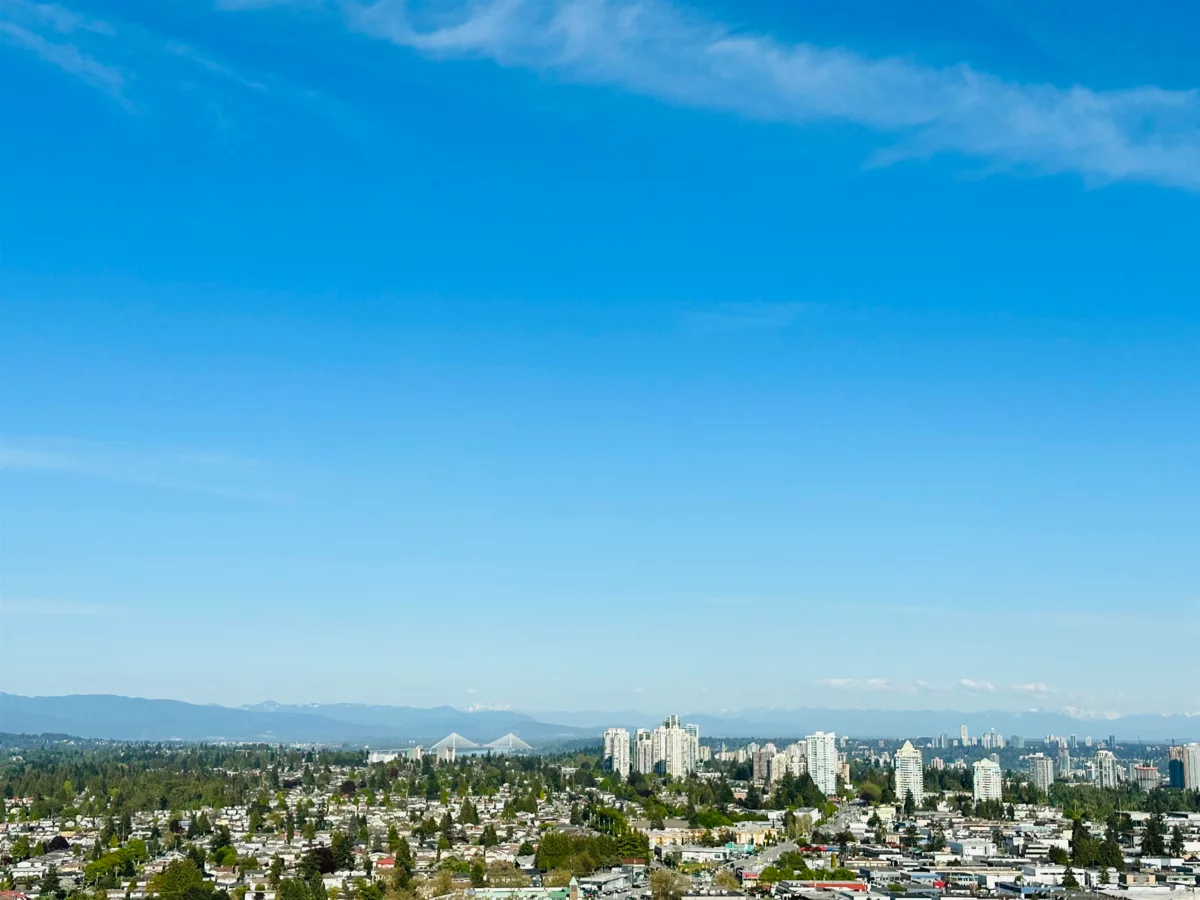 MIDORI by POLYGON! Rarely available northeast corner unit, over 935 sqft, 2Bed + 2Bath. This bright and spacious home features over-height ceilings, quartz countertops, build-in appliances, gas range and custom-made cabinets. Master bedroom includes walk-in closet, double vanity & a spa-inspired shower. Enjoy stunning sunrises from your square-shaped balcony (120+ sqft) with panoramic views of the city, Deer Lake, Mt. Baker, Fraser river and mountains. Amenities include gym, lounge, pet grooming station & car wash area. Prime location just steps to Metrotown, Bonsor Community Center, banks, restaurants and Skytrain. Photos with furniture were taken before the owner moved out. ONE parking stall and TWO lockers included as a bonus!