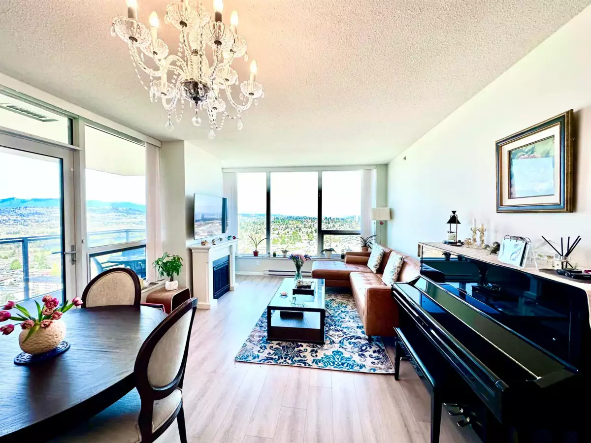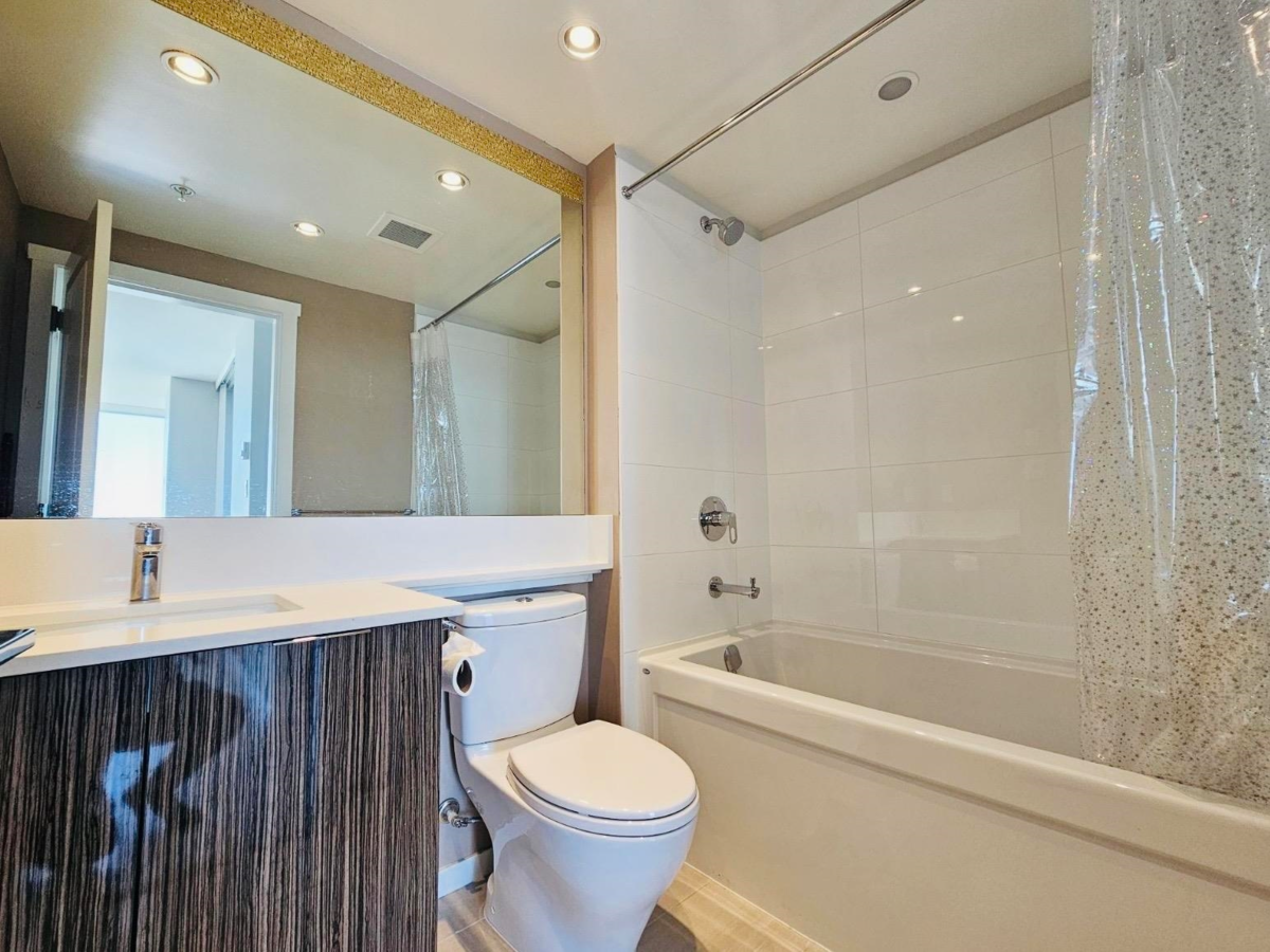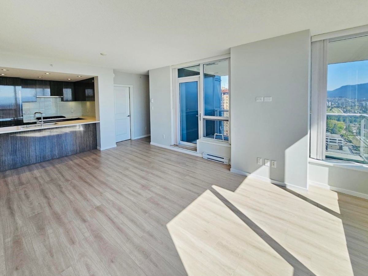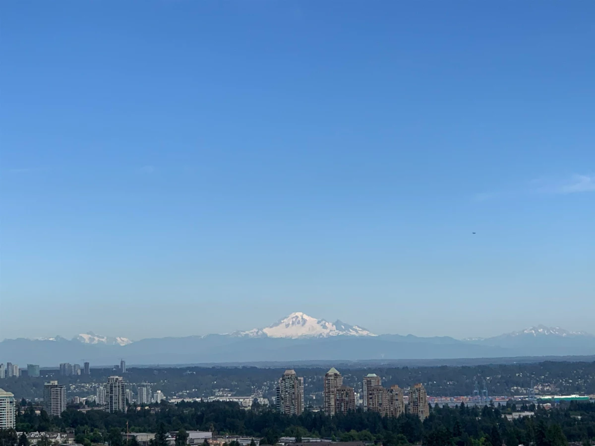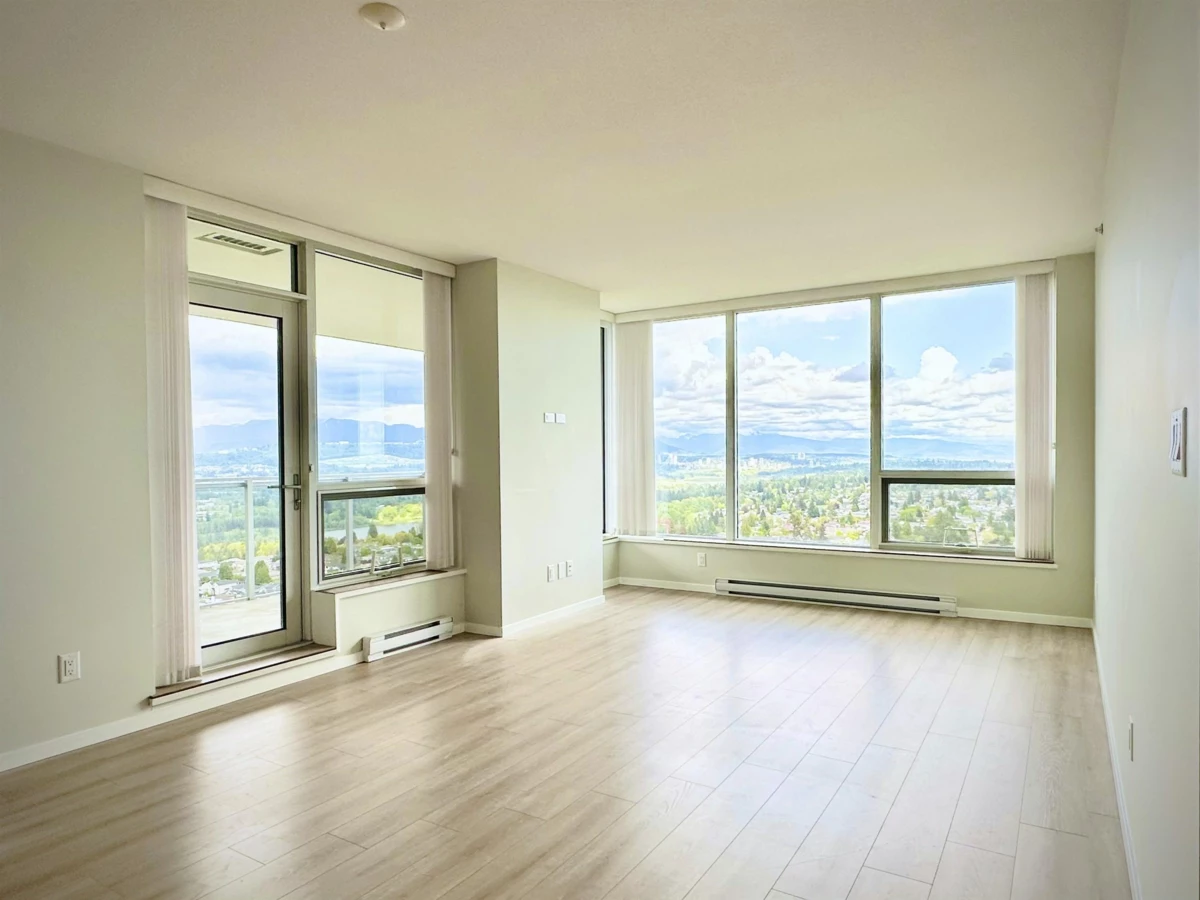 MIDORI by POLYGON! Rarely available northeast corner unit, over 935 sqft, 2Bed + 2Bath. This bright and spacious home features over-height ceilings, quartz countertops, build-in appliances, gas range and custom-made cabinets. Master bedroom includes walk-in closet, double vanity & a spa-inspired shower. Enjoy stunning sunrises from your square-shaped balcony (120+ sqft) with panoramic views of the city, Deer Lake, Mt. Baker, Fraser river and mountains. Amenities include gym, lounge, pet grooming station & car wash area. Prime location just steps to Metrotown, Bonsor Community Center, banks, restaurants and Skytrain. Photos with furniture were taken before the owner moved out. ONE parking stall and TWO lockers included as a bonus!