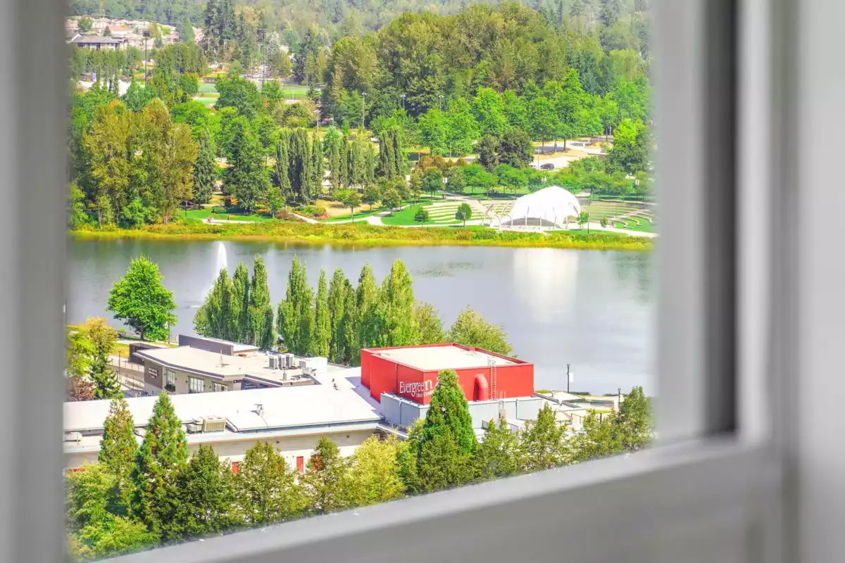 Sought-after EVERGREEN built by BOSA. Stunning 2 bed + den over 1000sf on the 28th floor. Well-appointed layout, floor-to-ceiling windows, chef-inspired kitchen, and spa-inspired baths. 2 good sized bedrooms. Den offers the perfect home office or private retreat or could be used as a 3rd bedroom. North-west CORNER with panoramic VIEWS of mountains, city and the Lafarge Lake. Located in the heart of the Coquitlam Center, steps to SkyTrain, Coquitlam Centre Mall, Lafarge Lake, dining & entertainment. A rare opportunity to own a sophisticated home in an unbeatable location. Open house Saturday, Dec. 13, 2-4pm.