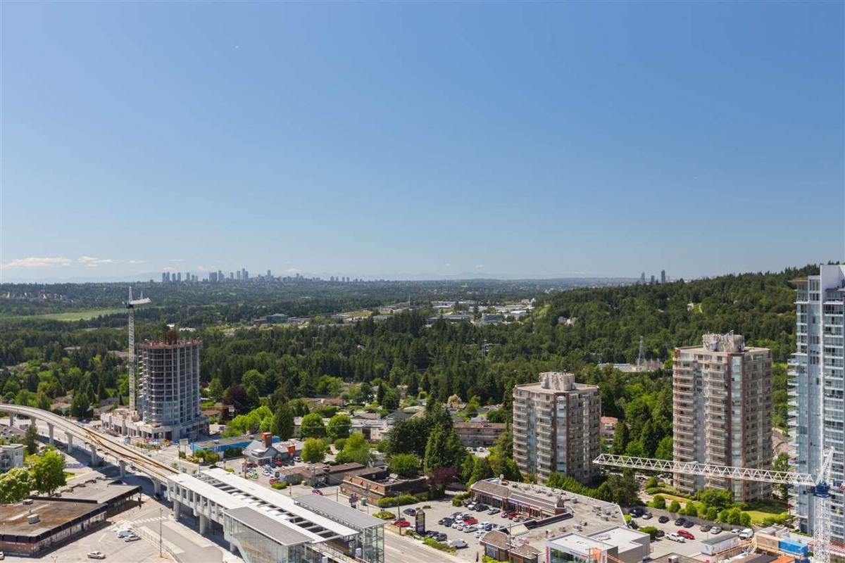 Uptown 2 built by reputable BOSA featuring a 1 bedroom+ LARGE den. Spacious 600sqft living space with chefs kitchen, gas stove, quartz countertops, European style cabinet, in-suite laundry and large balcony for your BBQ and morning coffee with gorgeous unobstructed panoramic view on the 28th floor facing SOUTH. Steps to Burquitlam skytrain station and all the essentials. Close to SFU and easy access to Hwy 1. Amenities include yoga studio, full gym, steam & sauna rooms & outdoor green space w/ BBQs & patio seating. 1 PARKING & 1 LOCKER included. Great Urban living in ideal location!