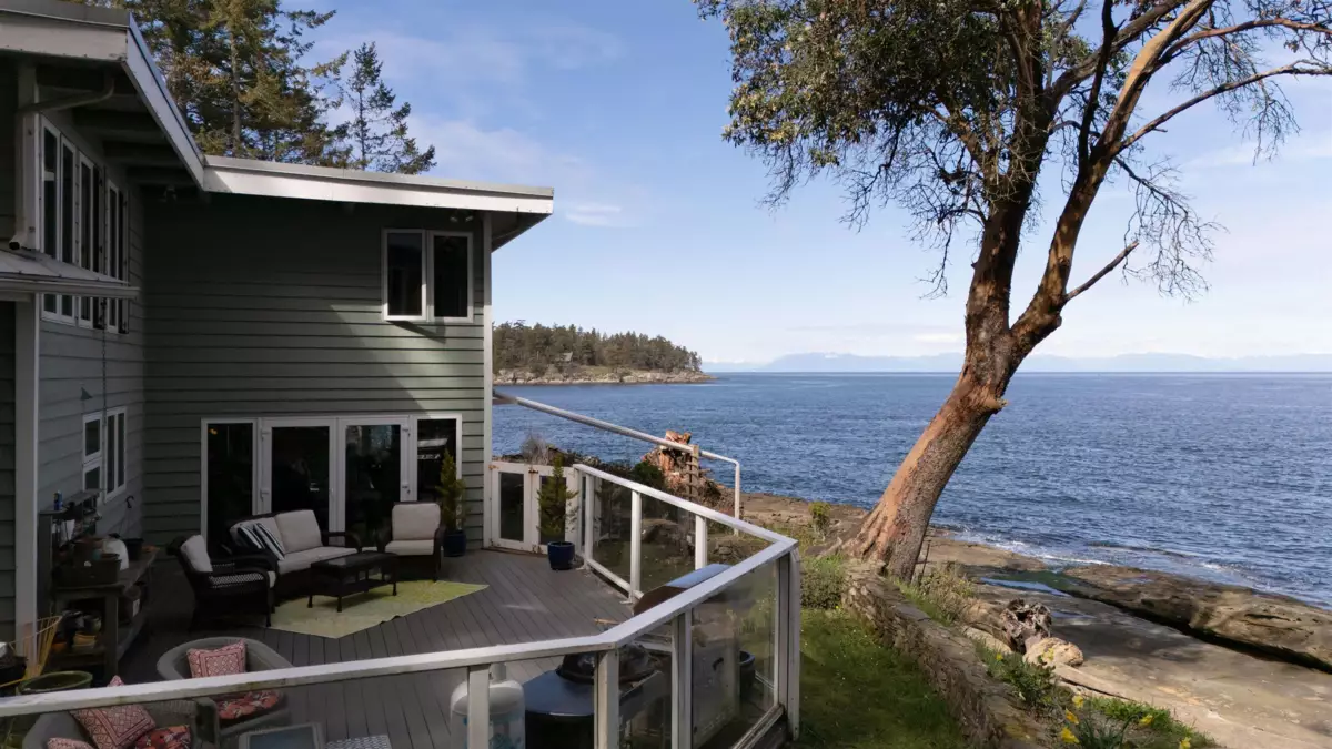 ***ATTENTION FOREIGN BUYERS*** - Rare opportunity to purchase TWO oceanfront properties on beautiful Galiano Island. This private West Coast retreat spans 1.74 acres with approx. 250 ft of east-facing, low-bank waterfront. Includes a renovated main home and a modern 758 sq ft, 2-bedroom, 1-bath detached cottage-ideal for guests or family. The main home has 2 bedrooms (potential 3rd), 2 bathrooms, and 2,638 sq ft of bright living space with exposed log beams, vaulted ceilings, and floor-to-ceiling windows framing ocean views. Thoughtful renovations preserve the home's original character. A 916 sq ft workshop offers office or guest potential. Bordering Bellhouse Park, this private setting offers abundant marine wildlife.