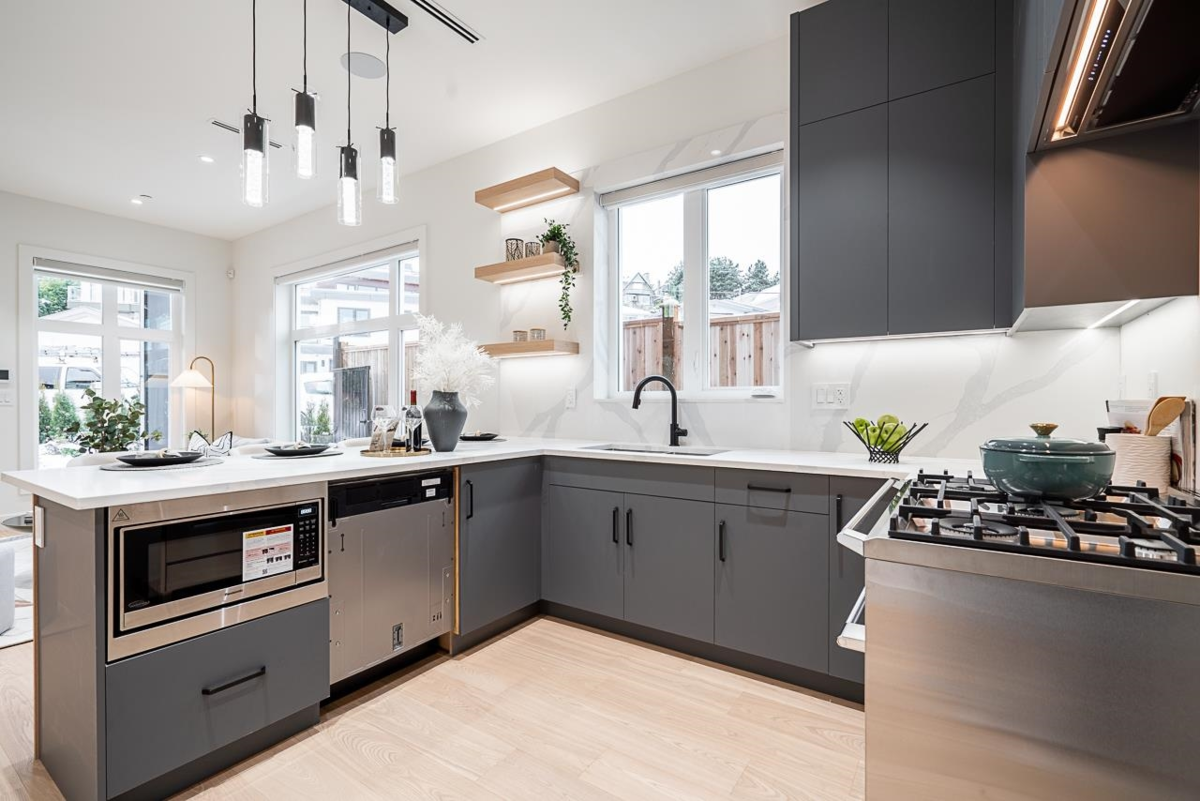 Luxury starts here this two level side by side duplex offers a living room, den and a powder room on the main level and three bed rooms upstairs with a view of mountains and city from the second floor. Main floor has also one bedroom legal suite on the back side of this home. These duplexes are built by very experienced builder. Open house on Jan.3rd.&4th.Sat&sun 2-4