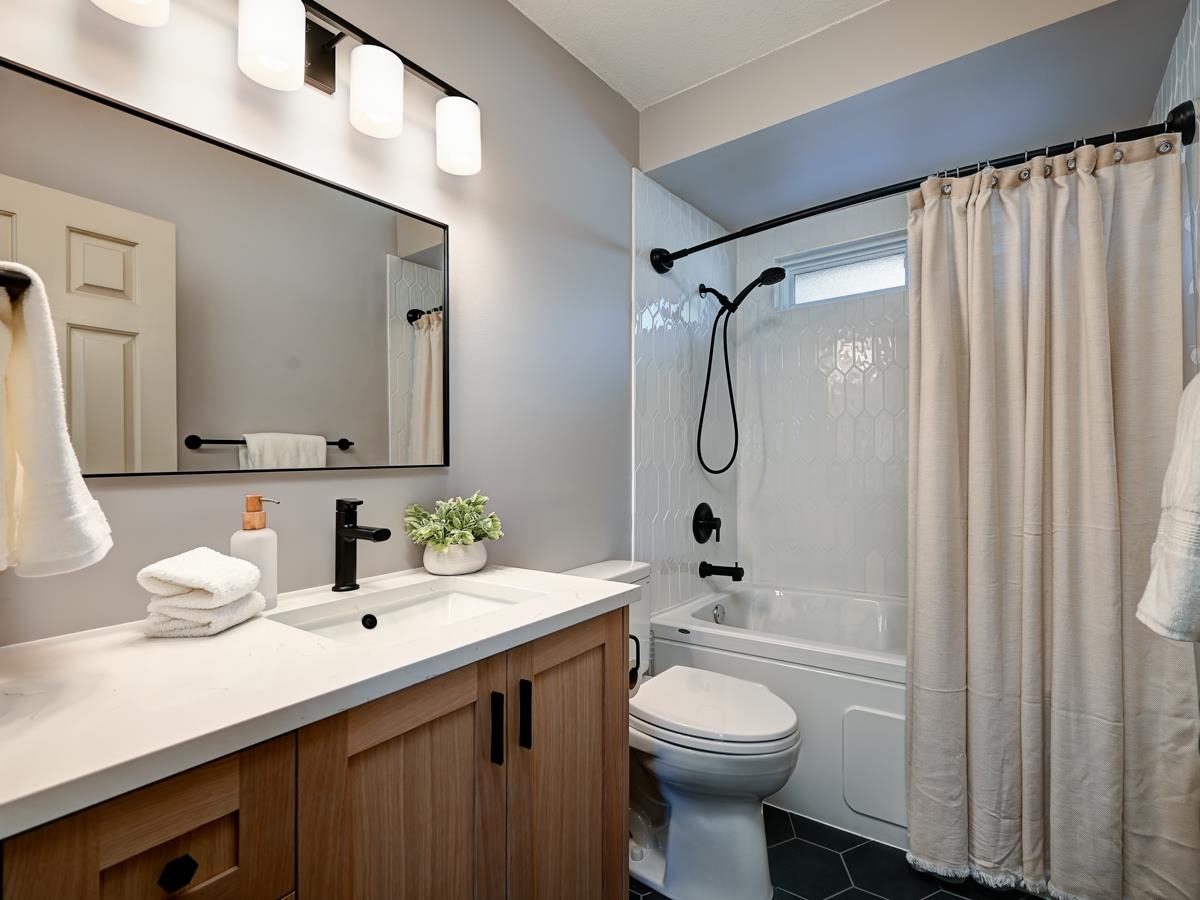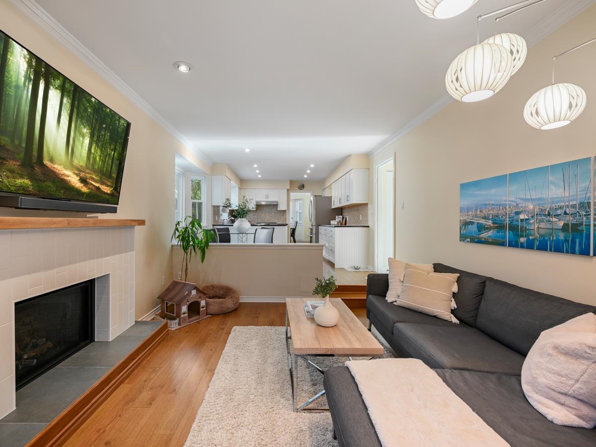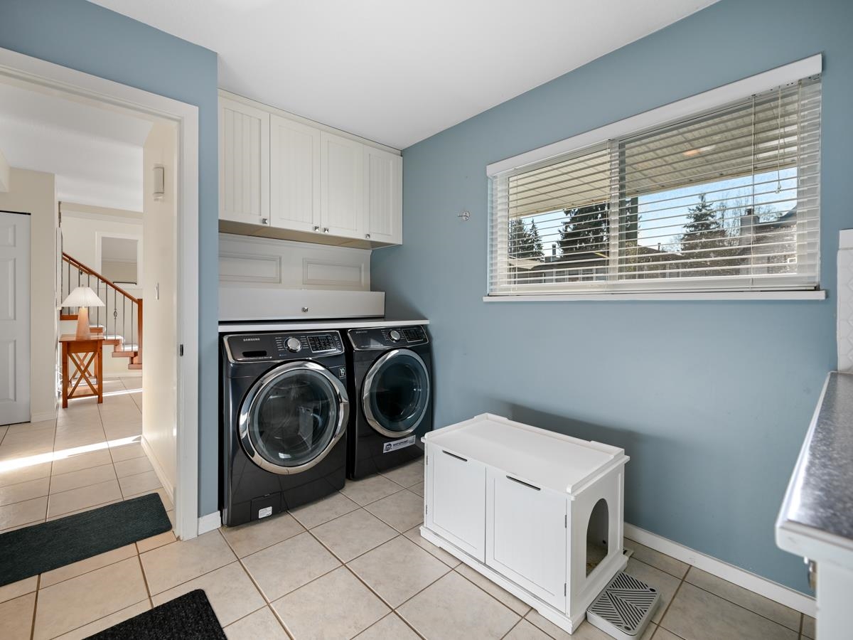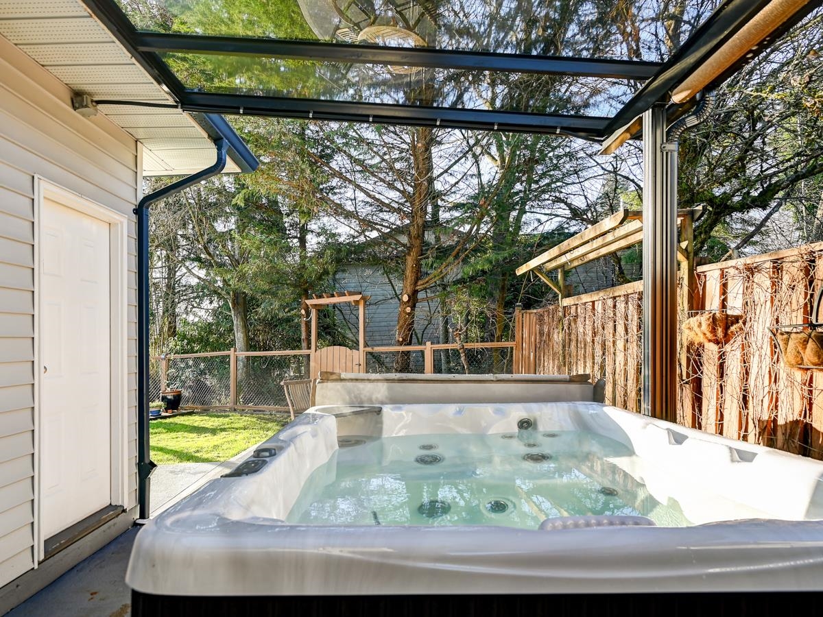 Immaculate 4-Bed home on a quiet centrally located corner lot, with street backing onto a greenbelt. This inviting home has all the curb appeal, new windows (2019), bamboo H/W floors & a living room featuring vaulted ceilings + a gas fireplace. The dining area flows into a gourmet kitchen w/ high-end S/S appliances & a bright eating area. Family room features a beautifully updated gas F/P (2020) and sliding doors open to the patio w/ aluminum/tempered glass cover (2020) & the Beachcomber hot tub (2023). Upstairs 4 spacious bedrooms, including a primary w/ ensuite + walk-in shower, plus a renovated secondary bathroom (2025). Complete with an over-height double garage featuring high-end shelving and new direct-mount silent opener (2024), steps to SkyTrain, Coquitlam Centre, schools, trails.