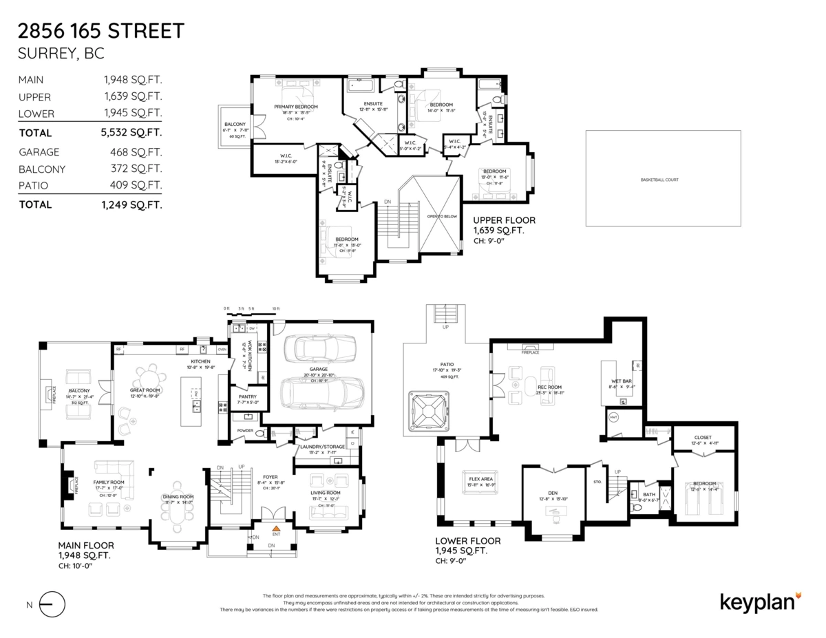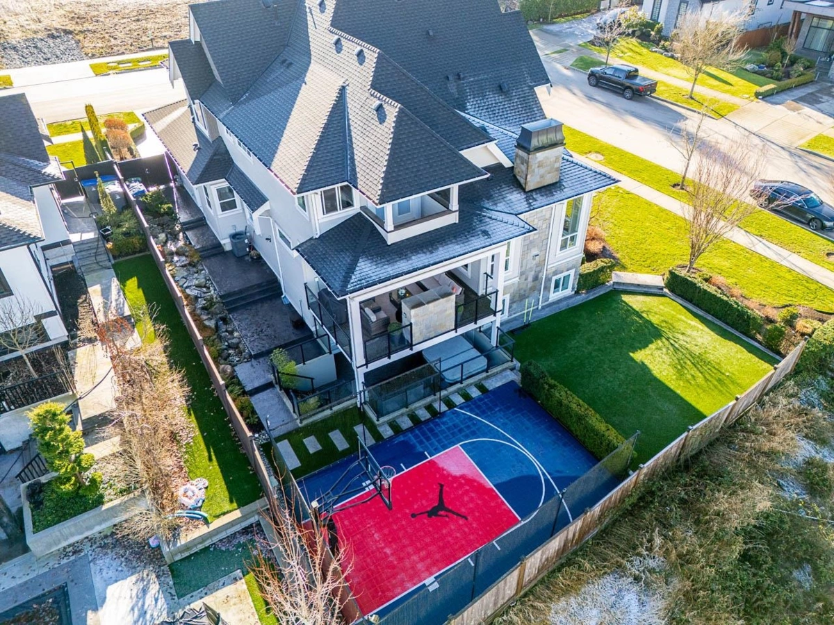 Architecturally designed by Raymond Bonter, this exceptional modern home sits on a rare high-elevation corner lot in prestigious Morgan View, showcasing panoramic city & Grouse Mtn views. Thoughtfully finished w/ designer lighting, it features a chef’s kitchen w/ Sub-Zero fridge + full spice kitchen, and seamless indoor-outdoor living w/ covered patio & gas FP. Custom landscaping creates a private oasis w/ prof. lit basketball court, turfed yard, illuminated waterfall by Fontana Waterscapes & spa-inspired hot tub. Extras incl. A/C, EV charger rough-in, epoxy garage floors, custom storage & slat walls. In Pacific Heights Elem & Grandview Heights Sec catchments, mins to Southridge & St. John Paul II.