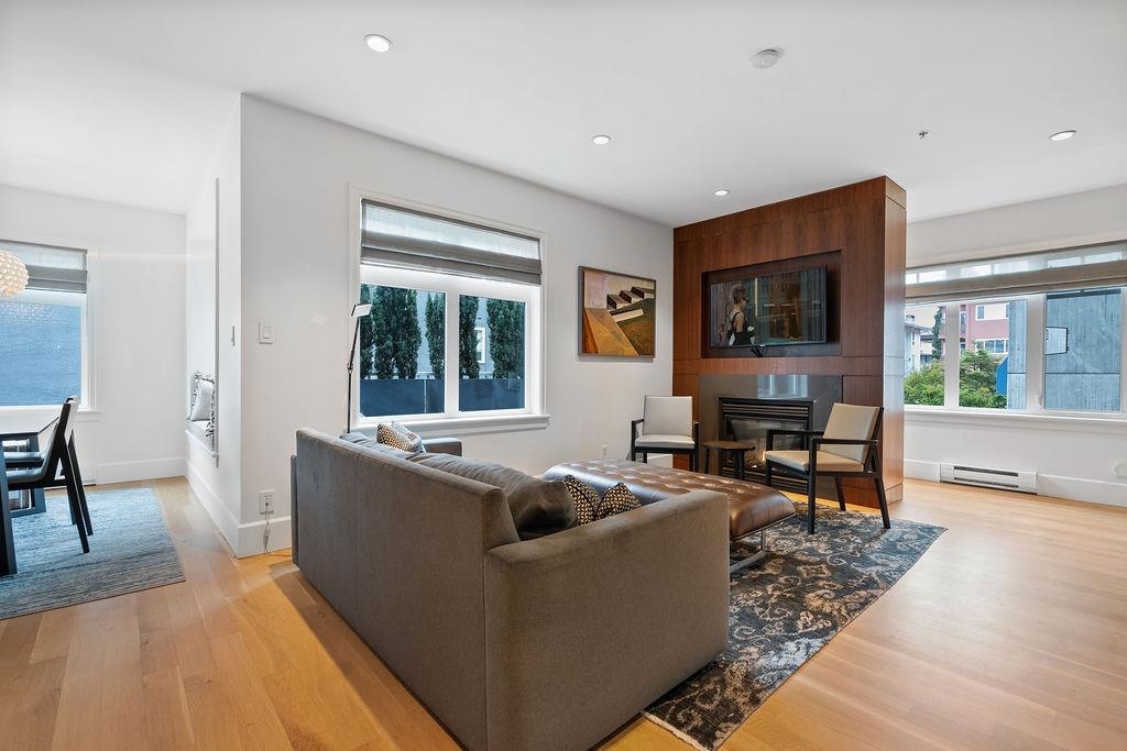 A beautifully reimagined 3 storey Craftsman townhouse in the heart of Fairview featuring a seamless blend of masculine and feminine design including wide plank oak floors, modern cabinetry, gas fireplace and a cozy feel throughout. This home features top of the line appliances and materials used in the major renovation by local Vancouver designer. This unit is on a quiet SE corner allowing tons of natural light and features 2 spacious decks for bbq-ing and lounging. The primary suite is an entire floor with a gorgeous ensuite, large walk-in closet and a built-out office space for WFH. Centrally located with easy access to VGH Medical district, Downtown, Granville Street shops, Cambie Village retail, Canada line, Broadway line and incredible school catchment, this location has it all.