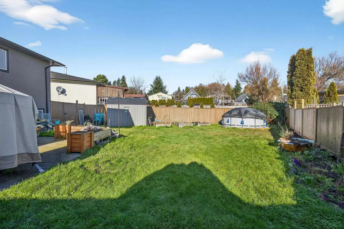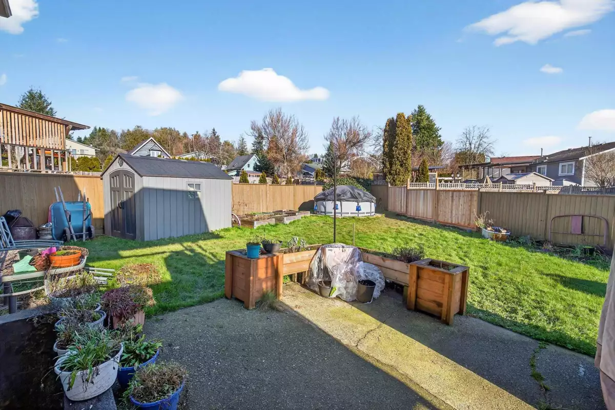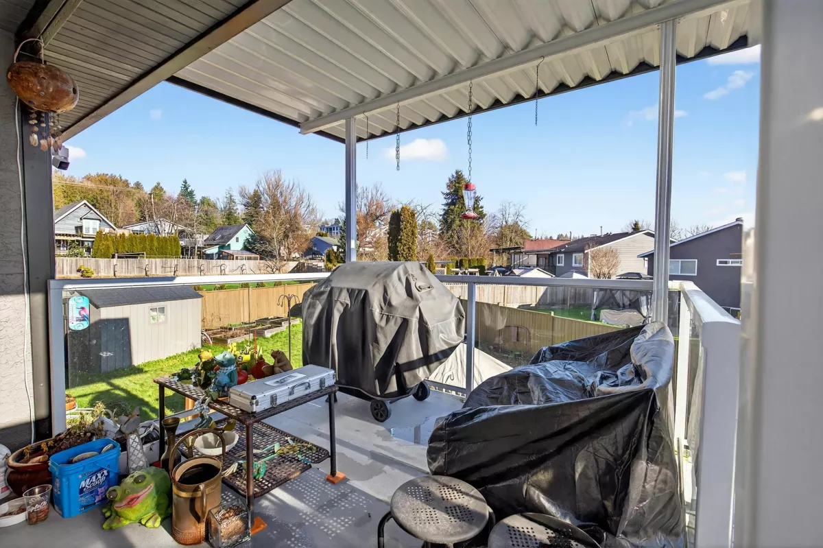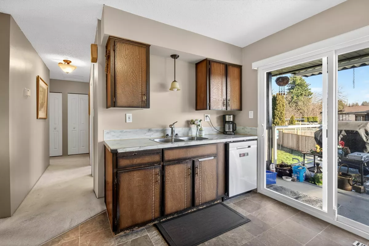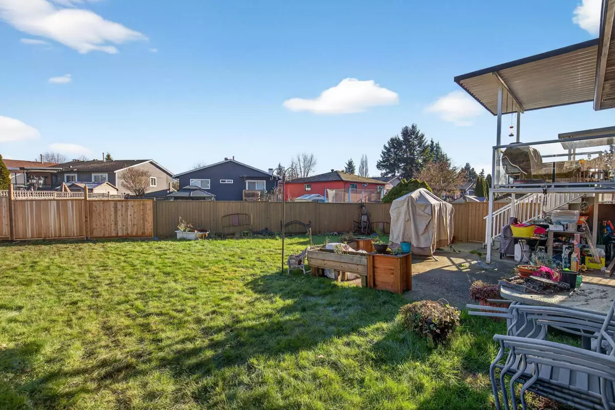 Welcome home to the sought-after neighbourhood of Langley Meadows. This well maintained home offers a bright, spacious living room, two bedrooms, and a full bathroom on the main level. The kitchen remains original, providing a great opportunity to create a space that reflects your own style. The lower level features a large recreation room, a convenient half bath, and flexible space for family living, hobbies, or future plans. Situated on a nice, fully fenced lot, the home includes a covered deck for year-round enjoyment and the convenience of an attached garage. Major updates include the roof, gutters, fence, covered deck, windows, hot water tank, furnace, and air conditioning. Ideally located close to schools, shopping, transit, and the future SkyTrain in a family-friendly community.