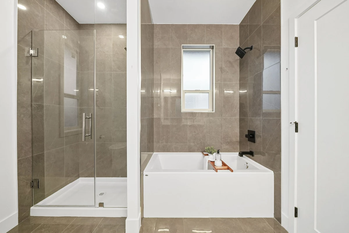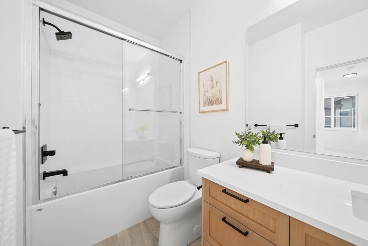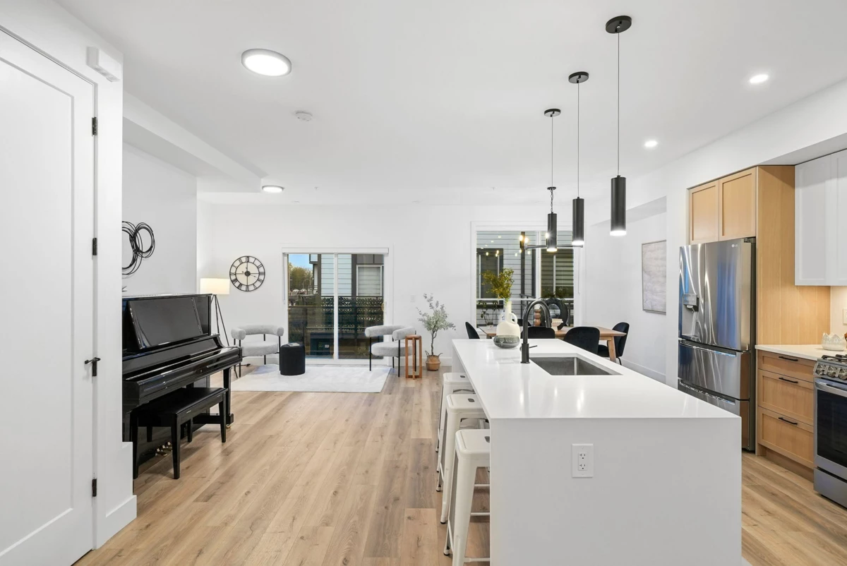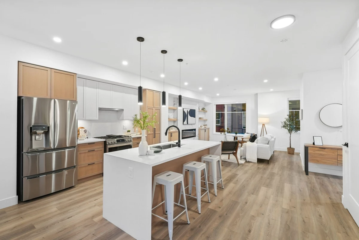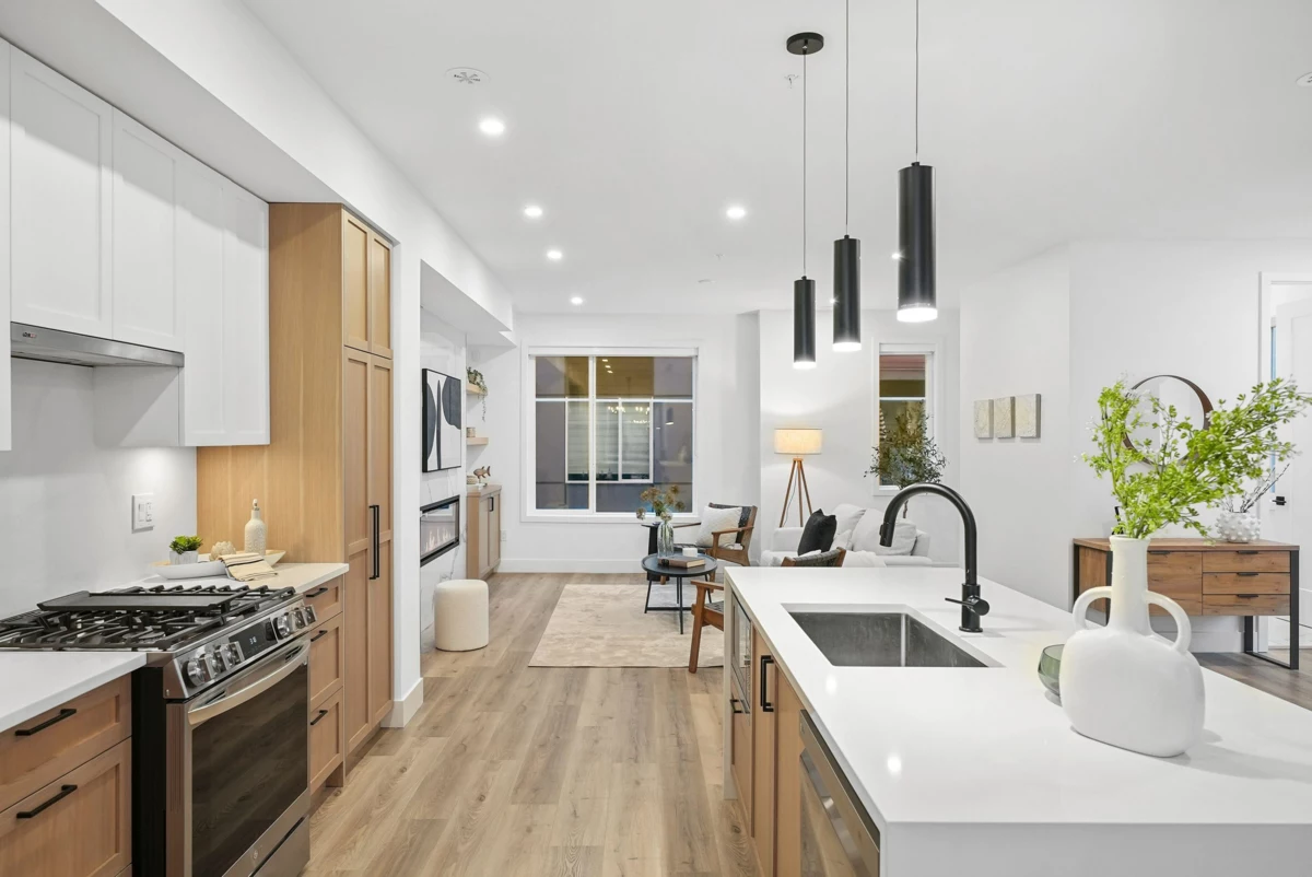 Welcome to Crofton! This bright end-unit townhome offers 4 beds, 4 baths, and 2,092 sq.ft. of high-quality construction and finishings. Enjoy NO GST and low strata fees of only $196.69! Main level features wide-plank laminate flooring, large windows, and a beautiful feature wall w/electric fireplace & built-ins. Chef-inspired kitchen includes two-tone shaker cabinets, a quartz waterfall island, LG stainless steel appliances, and a gas range. Perfect for entertaining! Upstairs, a huge luxurious primary bedroom with WIC and a spa-inspired ensuite w/double sinks, oversized glass shower, and soaker tub. Two additional bedrooms & full bath. Lower-level bedroom w/ensuite provides the perfect space for guests or office. Features central A/C, on-demand HW, a fenced yard, and a double garage!