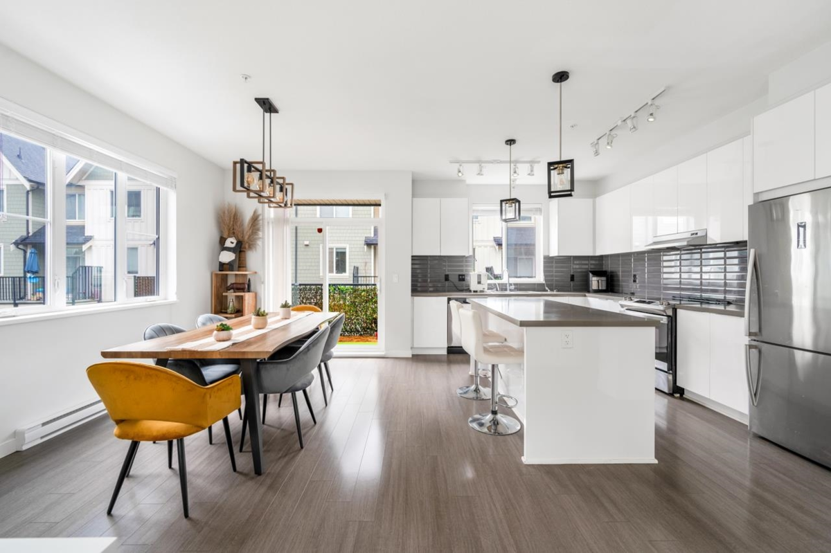 Welcome to Ashbury + Oak in the heart of Willoughby—perfect for first-time buyers and growing families. This bright 3-bedroom + den, 3-bath corner townhome offers a functional open layout with plenty of natural light, modern finishes, and a side-by-side double garage. The contemporary kitchen features stainless steel appliances, quartz countertops, and ample storage, ideal for daily family living. Enjoy outdoor space with a main-floor deck for BBQs and a private fenced yard for kids or pets. Family-friendly, pet-friendly community with excellent amenities including a gym, outdoor pool, hot tub, clubhouse, and guest suite. Walking distance to shops, parks, and schools, with easy access to highways and Carvolth Exchange.