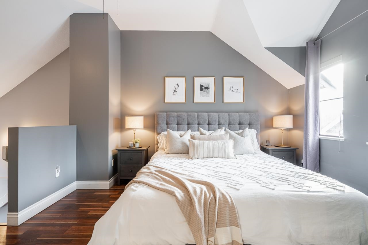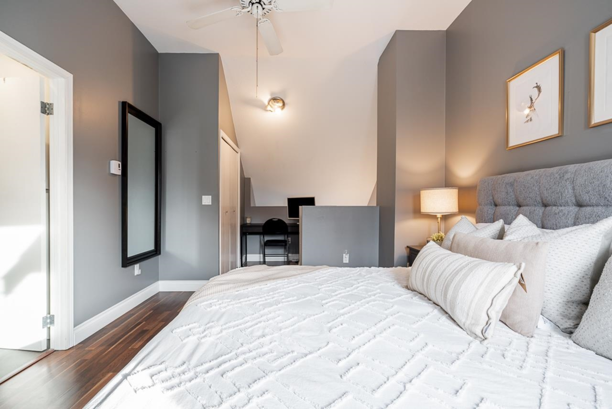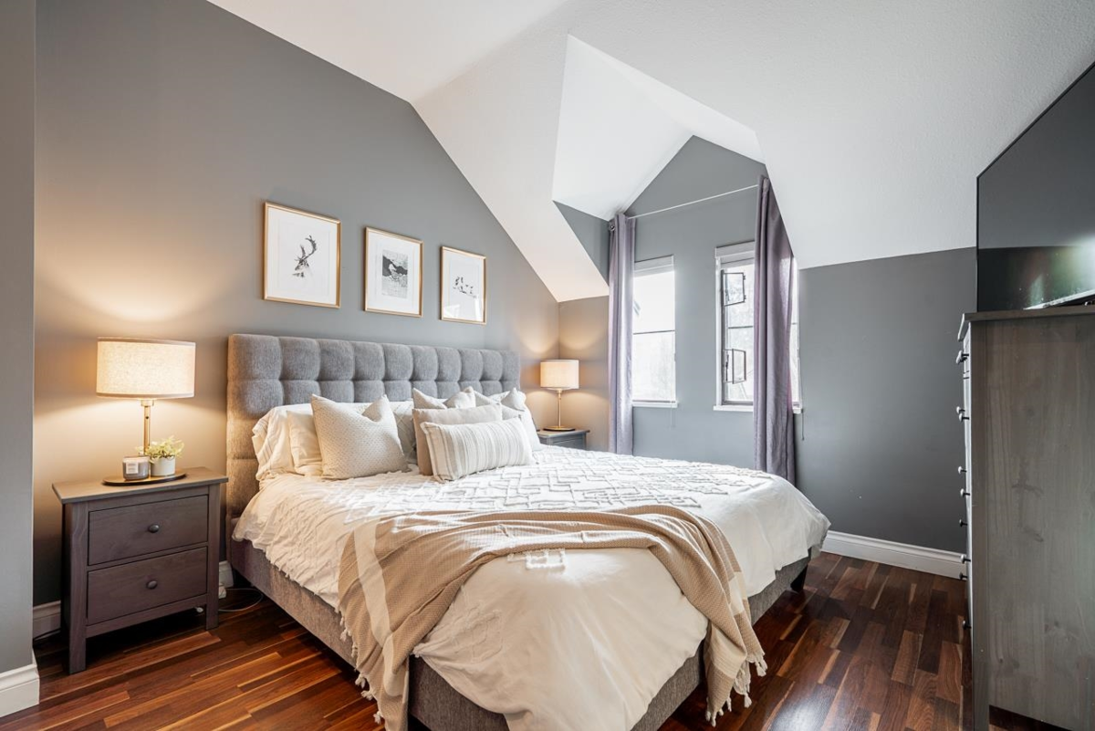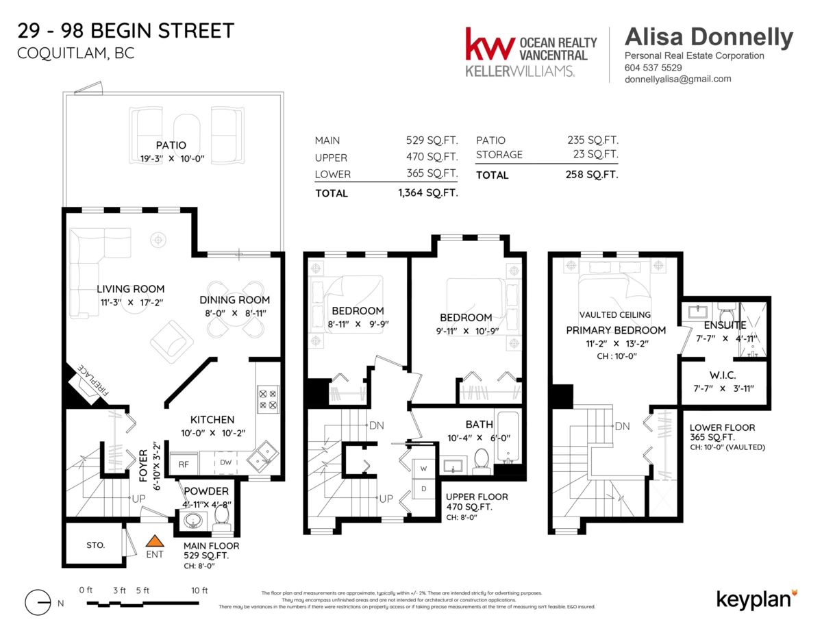 Tucked away in the well-cared-for Le Parc complex, this peaceful 3 bedroom, 3 bathroom townhouse offers a smart layout and tasteful updates throughout. The main level features a refreshed kitchen, sunlit dining area, and a stylish powder room. Relax in the inviting living space with a fireplace, or step outside to your private patio and fenced yard—perfect for quiet mornings or entertaining. Upstairs are two spacious bedrooms, a full bathroom, and convenient laundry. The top floor is dedicated to a serene primary suite with vaulted ceilings, walk-in closet, and ensuite. Recent improvements include updated bathrooms, laminate and tile flooring, fresh paint, and contemporary lighting. Steps to historic Maillardville and minutes to Hwy 1, shops, dining, and transit. A must-see opportunity.