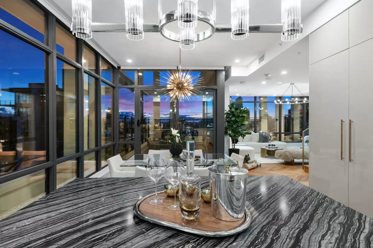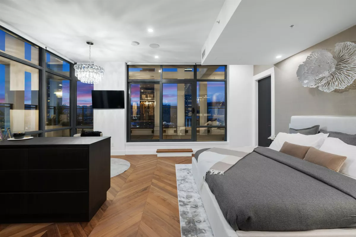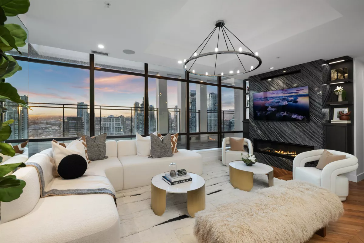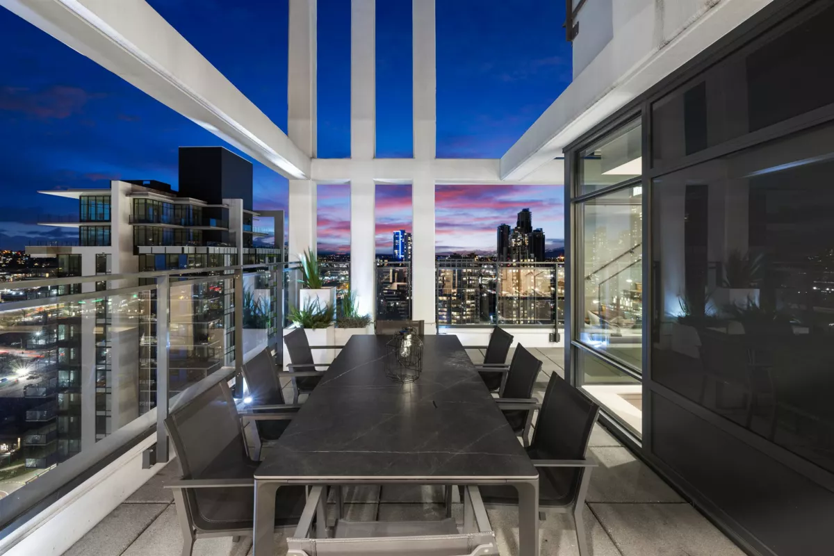 Discover penthouse living unlike any other in Brentwood at Milano, developed with signature decadence by Solterra. Every inch of this penthouse residence was designed with an impeccable choice of quality materials and luxury appointments. Everyday living is elevated with entertainment size principal rooms featuring a chef’s modern kitchen with all top grade appliances, 2 sensational bedroom suites with spa-like bathrooms together with floor to ceiling glass walls, walnut engineered flooring and an integrated smart home system with motorized blinds. Experience a sophisticated indoor outdoor lifestyle including a covered outdoor fireside lounge, summer dining terrace with BBQ plus a privately situated hot tub. This one-of-a-kind penthouse also includes a 4 car private garage.