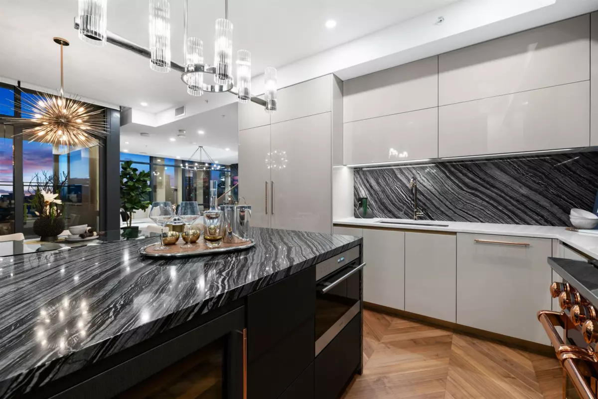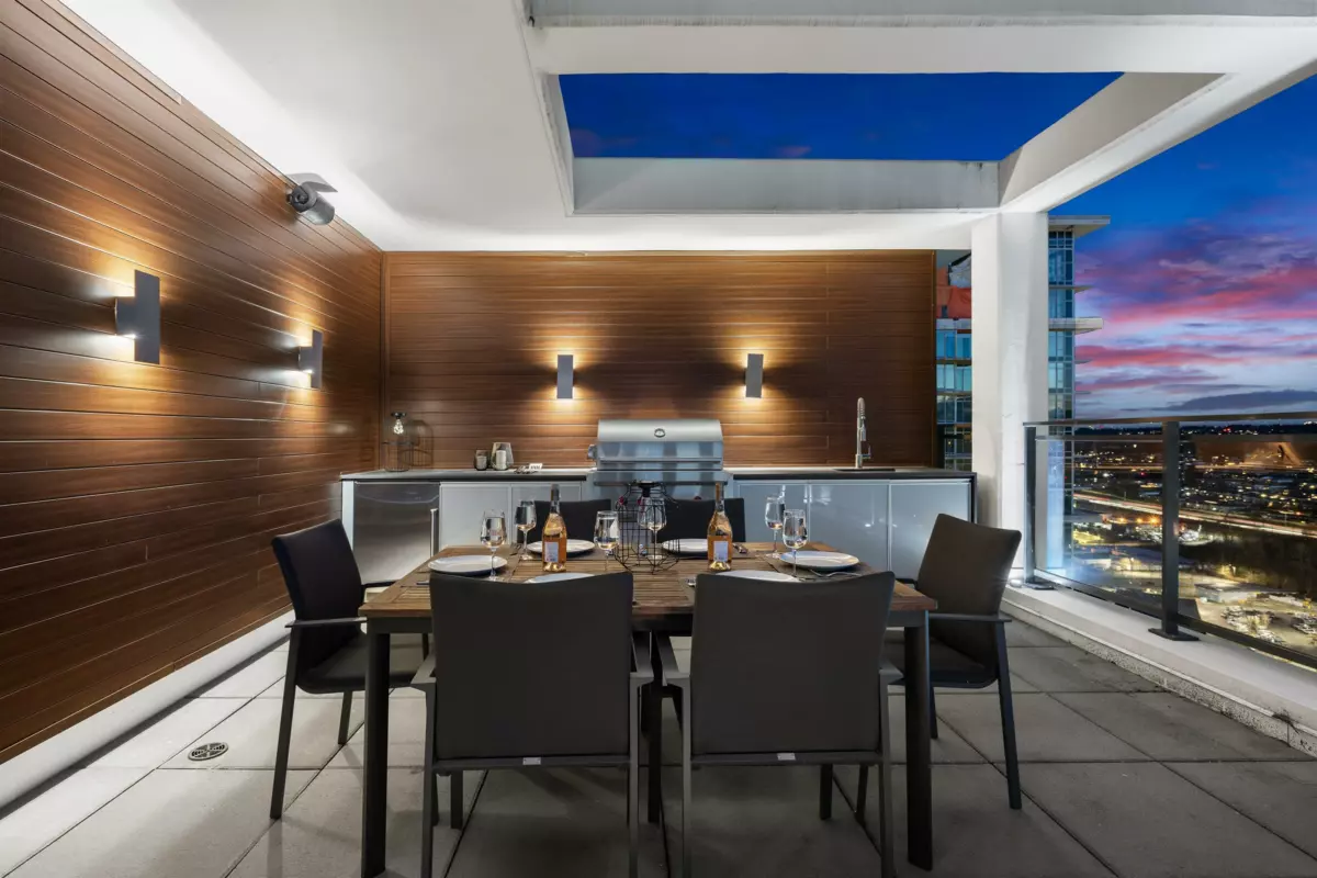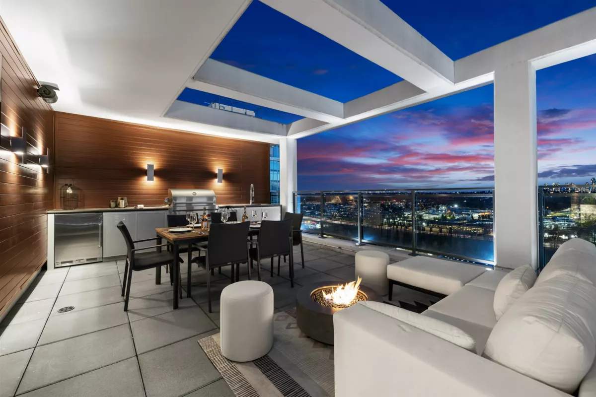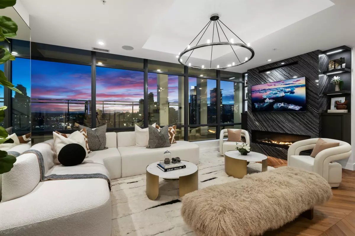 Discover penthouse living unlike any other in Brentwood at Milano, developed with signature decadence by Solterra. Every inch of this penthouse residence was designed with an impeccable choice of quality materials and luxury appointments. Everyday living is elevated with entertainment size principal rooms featuring a chef’s modern kitchen with all top grade appliances, 2 sensational bedroom suites with spa-like bathrooms together with floor to ceiling glass walls, walnut engineered flooring and an integrated smart home system with motorized blinds. Experience a sophisticated indoor outdoor lifestyle including a covered outdoor fireside lounge, summer dining terrace with BBQ plus a privately situated hot tub. This one-of-a-kind penthouse also includes a 4 car private garage.