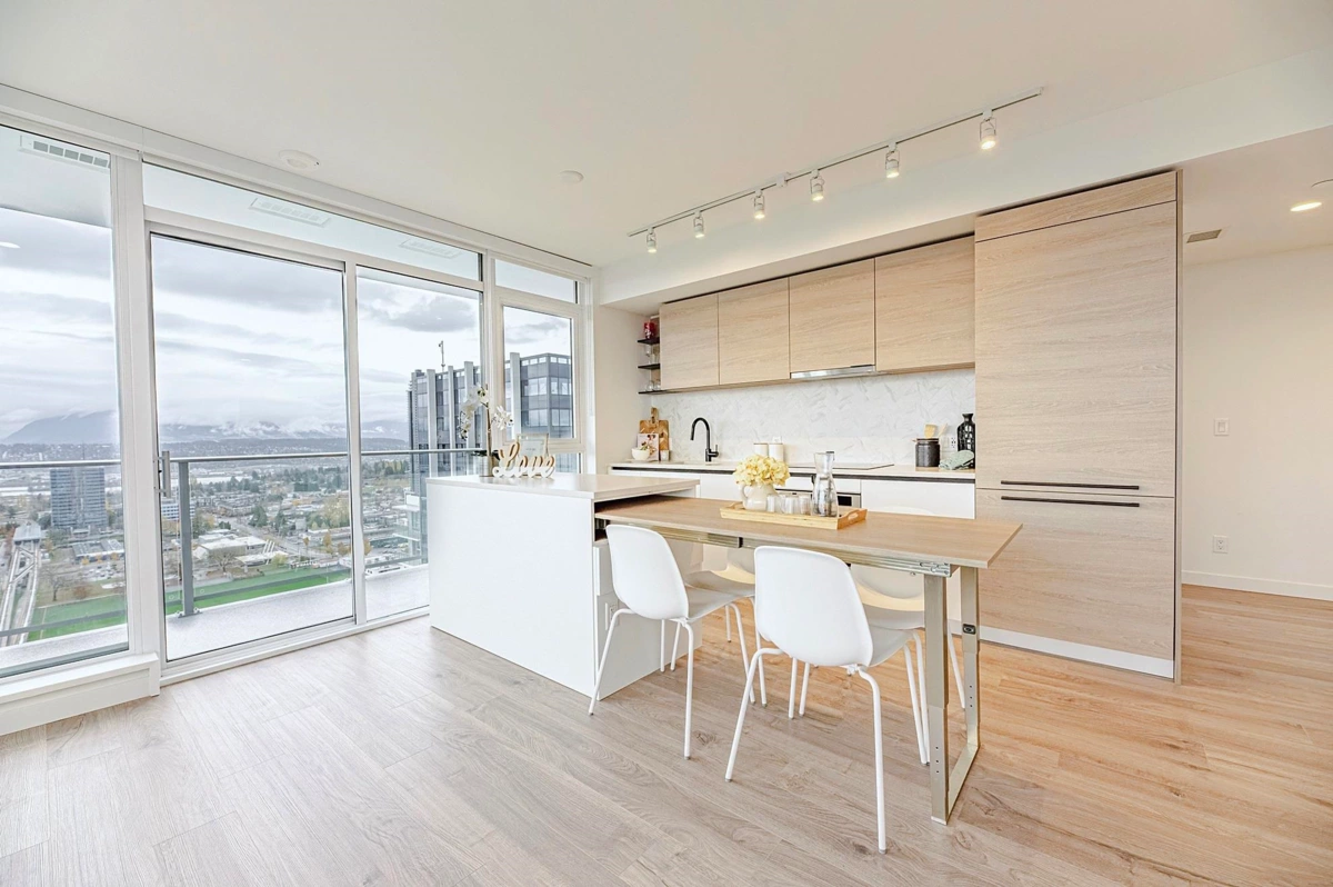 Serious seller! Open House on March 21, 22, and 23 for three days. Offers will be presented to seller on March 25. This premium 29th-floor corner unit by BOSA offers spectacular city, mountain, and river views. Impeccably maintained, it features an open layout with abundant natural light. The spacious kitchen has an office nook, perfect for home work or study. Both bedrooms are generously sized,and the balcony showcases high-rise views. The building offers top-notch amenities, including a Club House with a gym, yoga room, meeting rooms, kids’ play area, lounge, heated outdoor pool, BBQ area, bike storage with wash station,and parcel lockers. Ideally located near the Skytrain, SFU, future UBC campus. A Must See!
