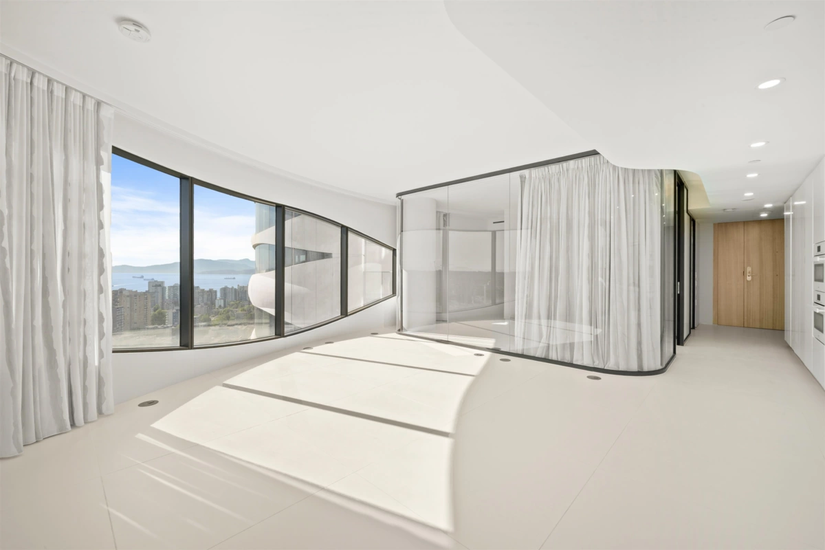 The Butterfly, a striking new addition to downtown Vancouver’s skyline. This world-class building features 331 one-of-a-kind homes. This BRAND NEW 2-bedroom, 2-bathroom unit on 29th floor with 1,065 sq. ft. of interior living and 1,250 Sq. Ft. of total living space offers a luxury living in one of the iconic buildings in Vancouver. The custom interior includes a eucalyptus veneered front door, large white porcelain flooring, and an Italian-crafted kitchen with Miele appliances. Floor-to-ceiling sheer drapery and curved glass walls enhance the light-filled space. LEED Gold certified, the building excels in energy efficiency and water conservation. Amenities include a 24-hour concierge, sky spa pool, gym, and a $1 million Fazioli piano. 2 Parking Stalls, 1 Storage, 1 Bicycle Storage.