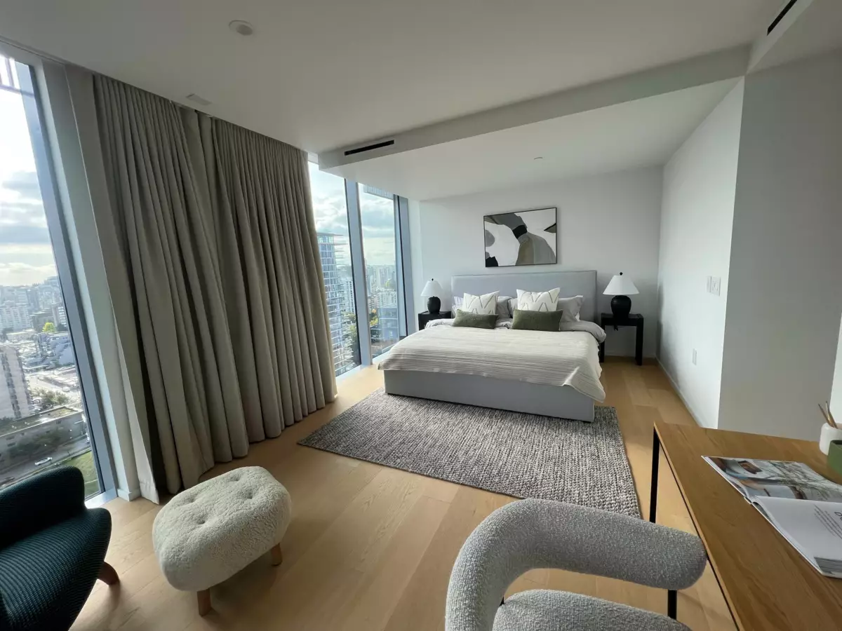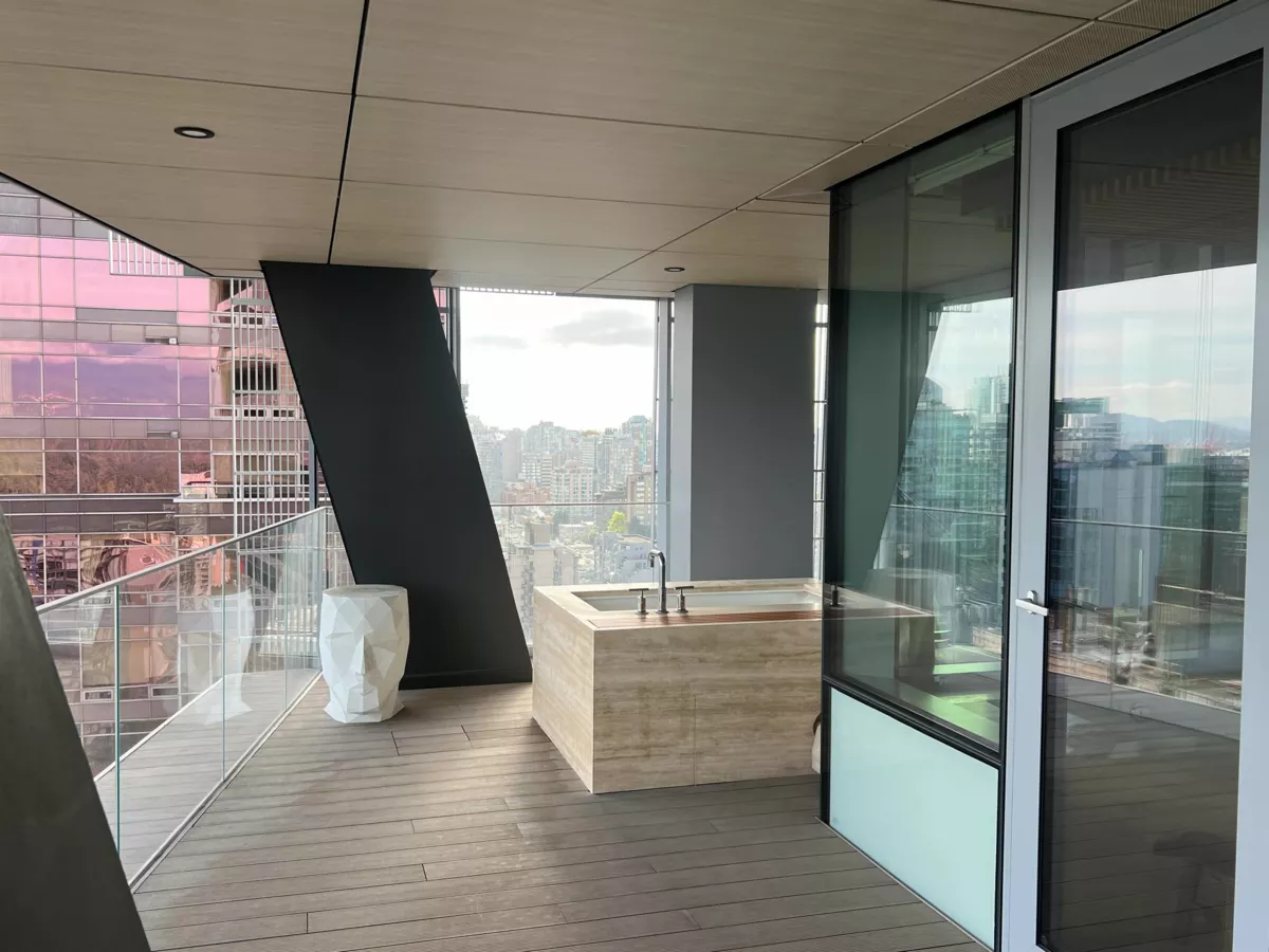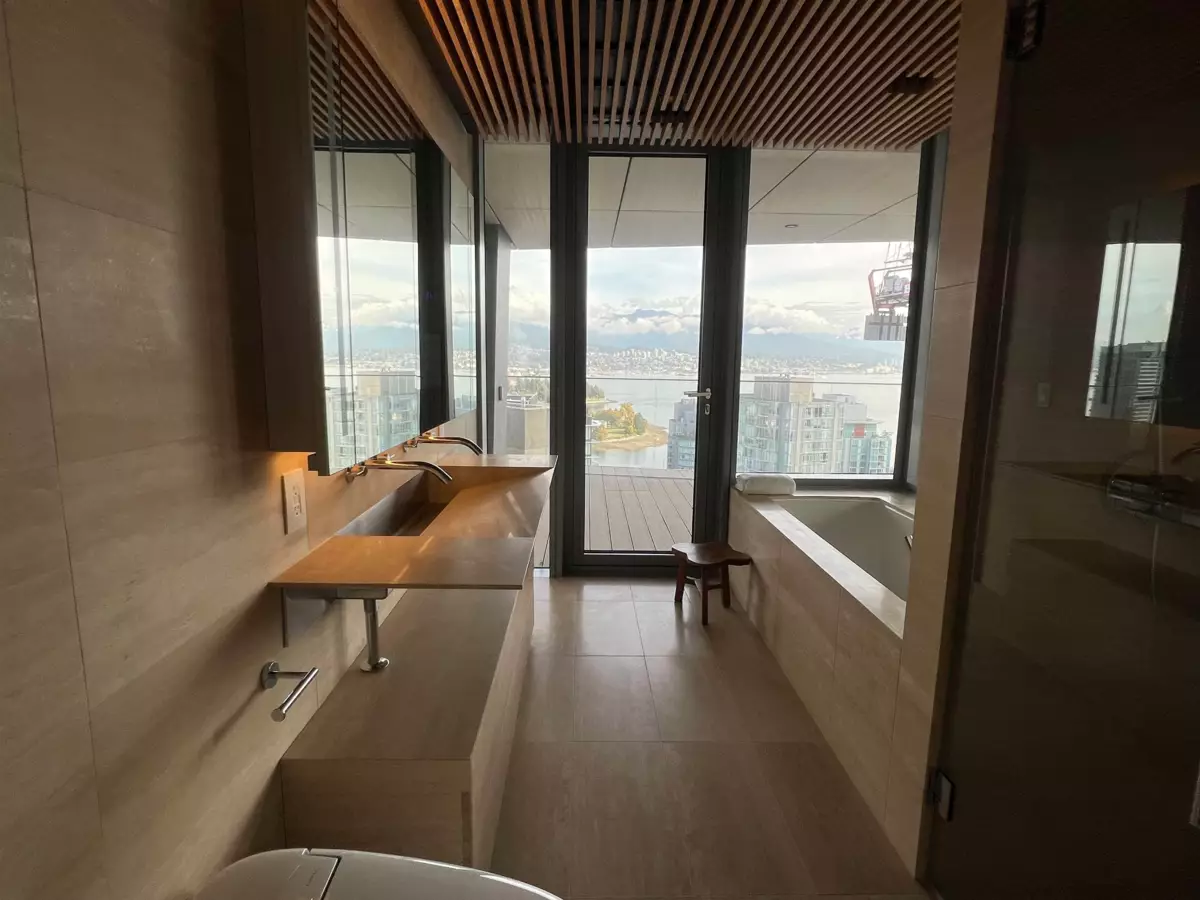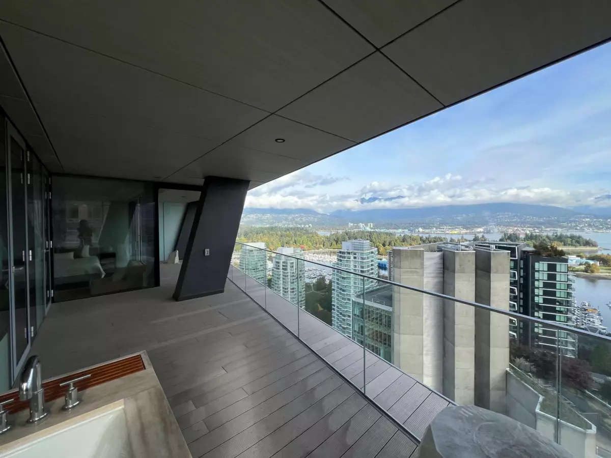 Welcome to the newest standard of Vancouver luxury: Alberni by Kengo Kuma.Imagine living in this spectacular 3 bdrm suite, where every detail has been meticulously crafted. Encompassing 2,066 sqft of refined interiors and an expansive 520+ sqft of private balcony space, this residence offers truly breathtaking, panoramic vistas spanning English Bay, Stanley Park, and the majestic North Shore mountains. Inside, the exquisite design features continue with curved wood walls, a signature of Kuma's aesthetic, complemented by top-of-the-line Miele appliances and sophisticated stone countertops.The amenities redefine opulence, including a serene Japanese moss garden, a 25-meter swimming pool, an exclusive wine room,gym,music room,fitness center,indoor pool.Included are 1 parking spot and 1 locker