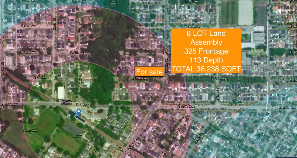 Builder's development DREAM LOTS - 36233 sf area, 8 lots, Land Assembly for Transit Oriented Area (TOA). 12 storey high-rise development, FSR 4.0. 200 to 400 meters of SkyTrain Tier 2 area. Very Quiet Neighbourhood on East 28th Ave. with mountains and water view (after built). Can be sold with 2983, 2965, 2961, 2955, 2953, 2951, 2941, 2937,2931 E. 28th Ave. What are you waiting for?