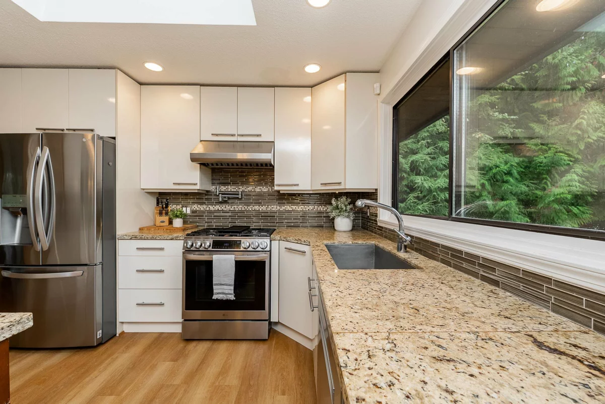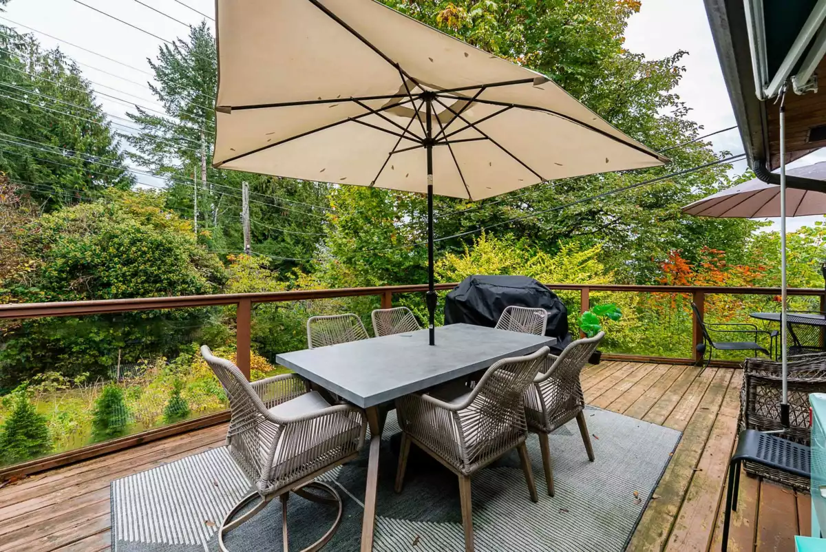 Family-friendly Ranch Park home on a 9,900 sq ft corner lot on a quiet cul-de-sac! This 4 bed, 3 bath residence offers 2,082 sq ft of updated living space. The main level features a spacious living room w/hardwood floors, a cozy fireplace, and a dining area w/French doors leading to a wrap-around balcony with views! The kitchen has granite countertops, updated stainless steel appliances including a gas cooktop, island, and abundant storage. The primary bed overlooks lush greenery and includes a 4-piece ensuite. The main bath is beautifully updated w/a frameless glass shower and heated floors. Downstairs is self-contained with a separate entrance, kitchen, rec room, and 4th bed. Updates include roof, A/C, furnace, and hot water tank. In a prime location with sought-after school catchment.