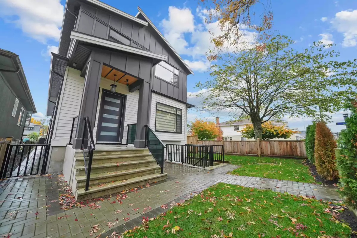 Experience modern living in this stunning 2024-built duplex offering exceptional income potential! Main home features 4 spacious bedrooms (3 up, 1 main), 3 full bathrooms, open-concept living/kitchen perfect for entertaining. Legal 3-bedroom basement suite with separate entrance, full bathroom & abundant natural light provides excellent rental income. Located in family-friendly Renfrew Heights with breathtaking North Shore mountain views. Walk to Renfrew Park Community Centre (pool, fitness, library), Renfrew Ravine Park trails, top schools (Nootka Elementary, Windermere Secondary, St. Jude's). Minutes to 29th Avenue SkyTrain, downtown in 20 mins. Steps to major shopping: Superstore, Walmart, Canadian Tire, Save-on-Foods along Grandview Highway.Close to Metrotown for dining &entertainment.