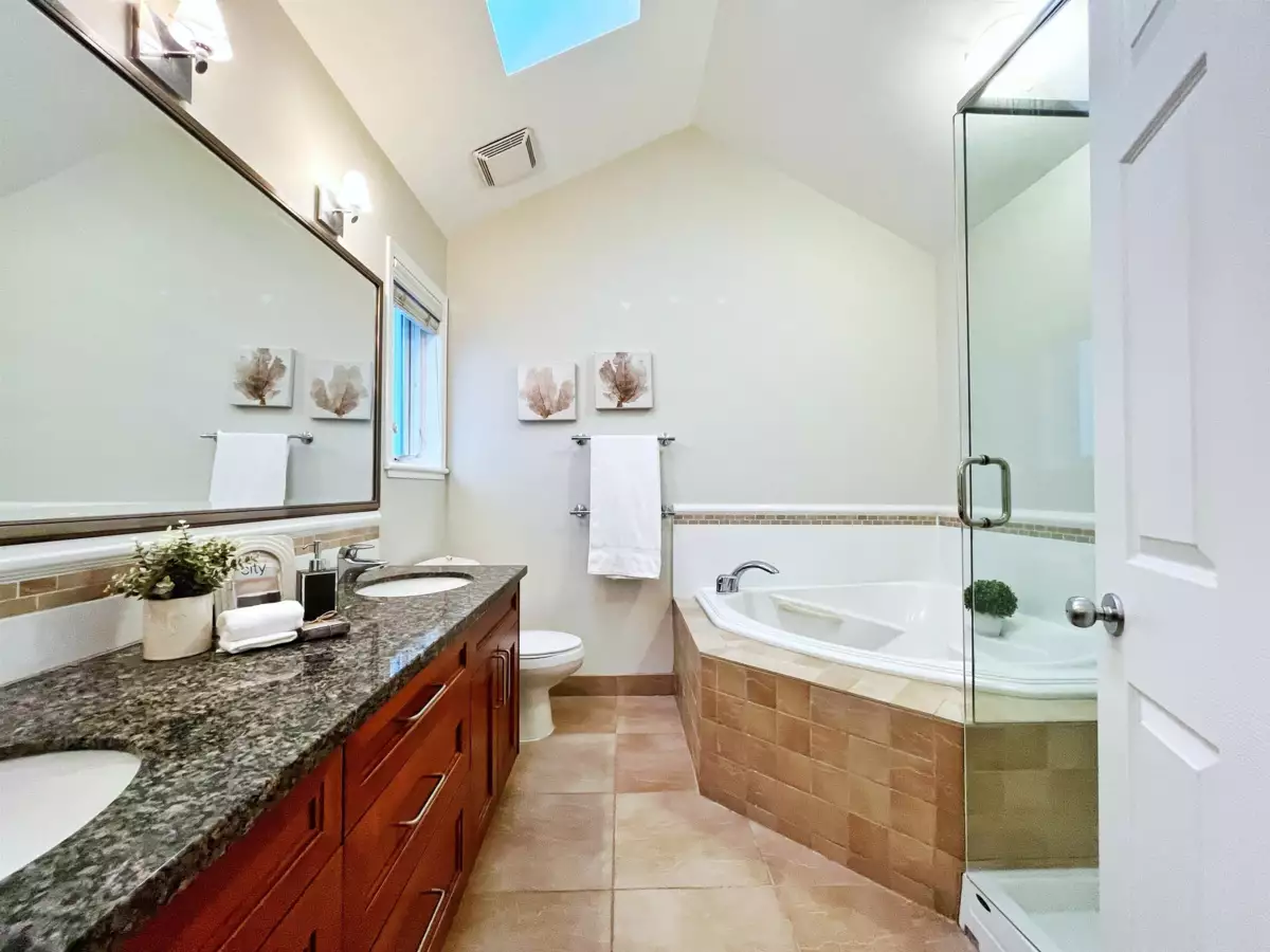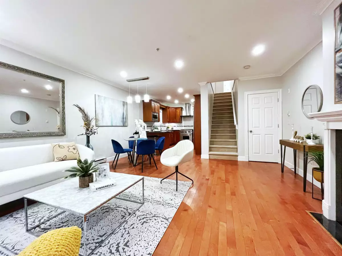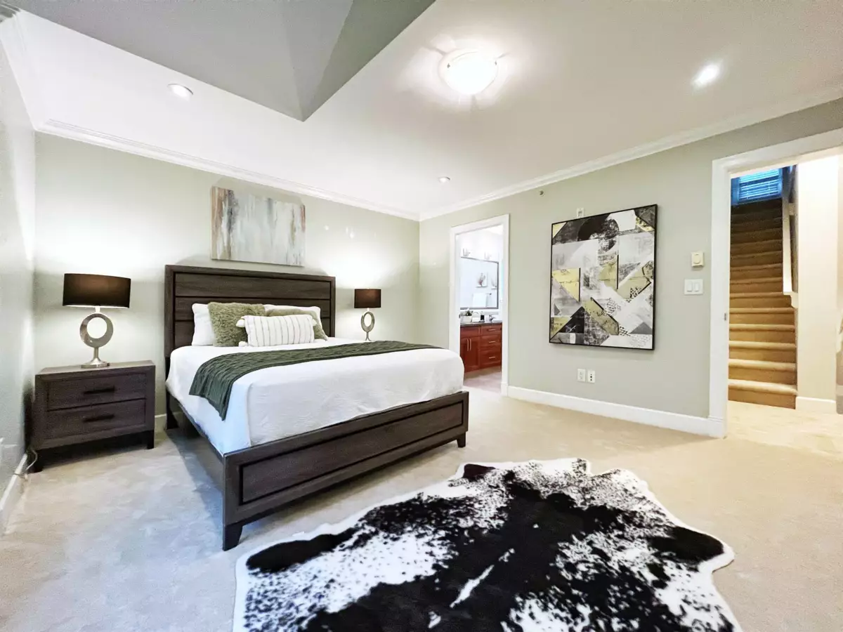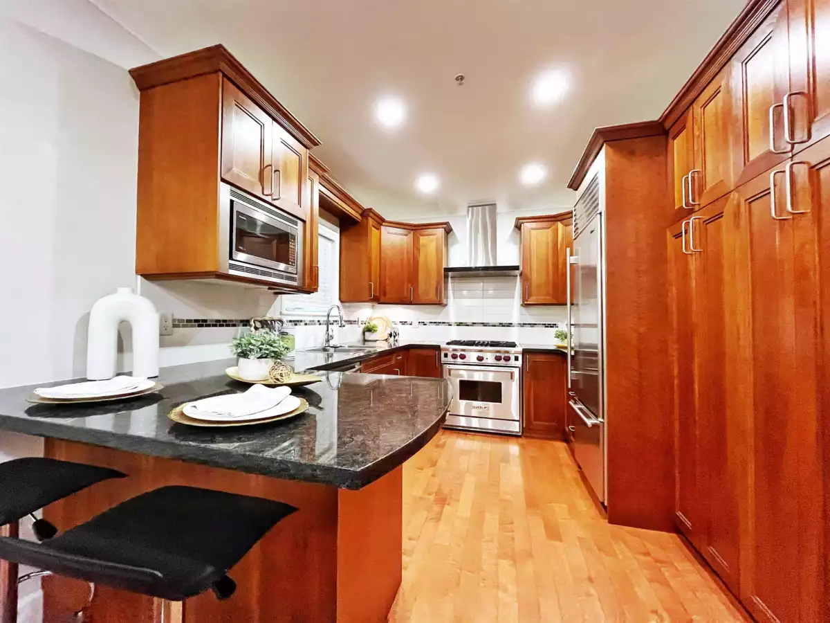 Charming West End townhome inspired by classic New York brownstone design, tucked away on a peaceful, tree-shaded street. This residence features both a private rooftop retreat and a welcoming front terrace. The main level offers a gourmet kitchen complete with granite counters, ample cabinetry, a Wolf gas cooktop and Subzero refrigerator. Rich hardwood floors, elegant crown mouldings, vaulted ceilings, and recessed lighting add warmth and character throughout. The upper floors include two generously sized bedrooms and two full baths. The primary suite accommodates a king bed with ease and includes a custom-designed closet system plus an ensuite showcasing dual vanities, a deep soaker tub, a separate glass shower, and a skylight that fills the space with natural light. 1 parking 1 locker