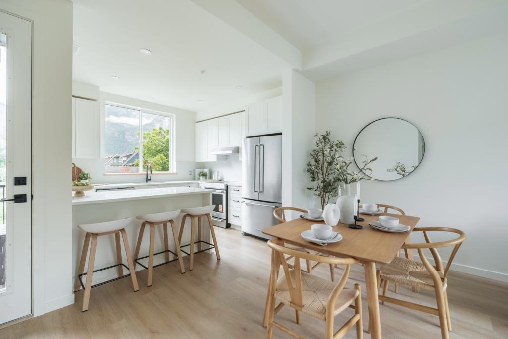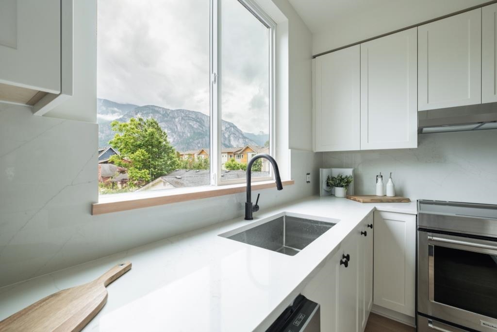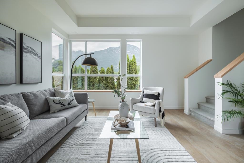 Live big, with a positive impact. ReGen Homes did the deep dive into what sustainable living looks like, so you get to live your life in comfort in a quiet, walkable neighbourhood adjacent to schools, trails, & downtown Squamish. Kitchen Aid appliances, composite marble countertops & backsplash frame a kitchen perfect for entertaining or preparing fresh greens from your own garden box. 10ft ceilings and oversized E&W facing windows give lots of natural light & mountain views from every room. Entire-home AC heat pump, supported by rooftop solar. Double wide garage with 8ft door and 9ft ceilings has room for gear. Solid wood doors throughout, custom wood window sills, Italian porcelain tiles in entryway & bathrooms, SPC flooring upgrade upstairs & bedrooms makes this home a must see.