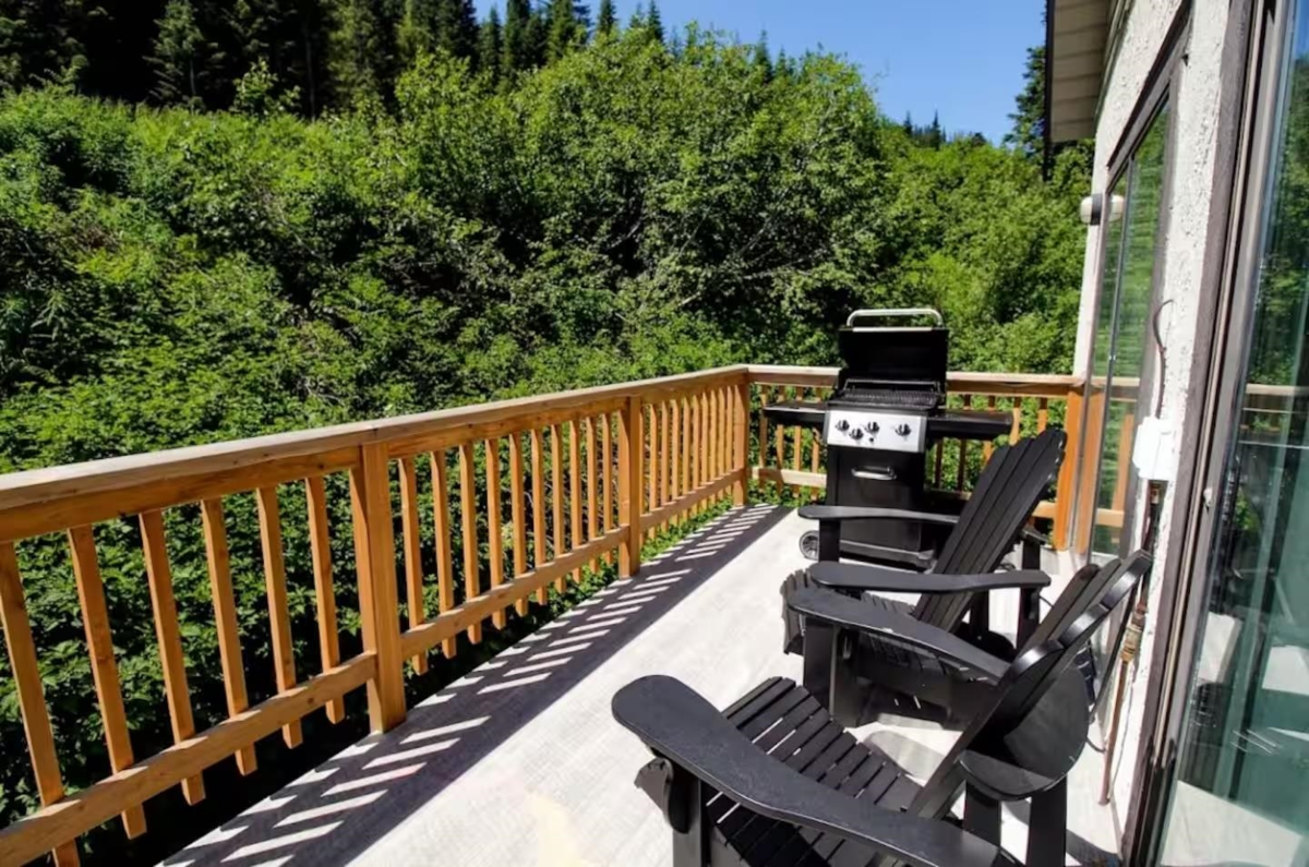 Hemlock Hideaway! Fully furnished, turn-key 3 bed, 2 bath NO STRATA corner cabin in a freehold fourplex. Recently renovated with new floors, paint, washer/dryer, gas fireplace, skylights, metal roof, updated drainage and structure. Private sauna, hot-tub-ready deck, ample parking, and low property taxes. Ideal for full-time living or Airbnb. Prime village location steps to the slopes and general store. Sasquatch Mountain offers year-round recreation with skiing, hiking, ATV riding, disc golf, outdoor park and future bike trails.