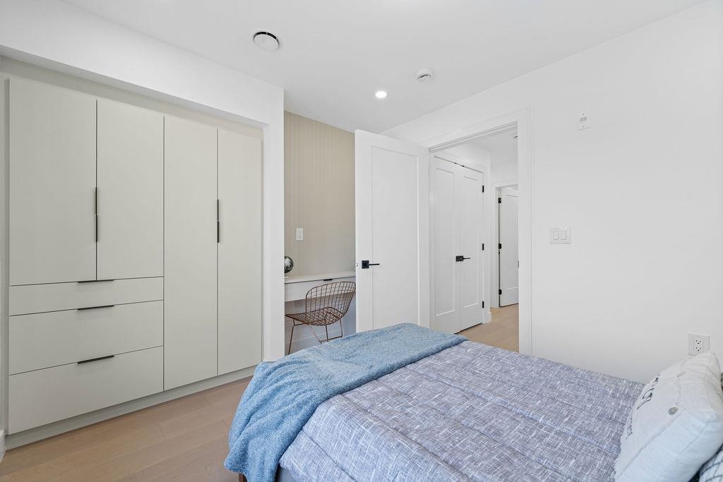 RARE 2-LEVEL BACK UNIT ! Stunning 3 beds, 3 baths south-facing home on iconic E. 8th Ave, steps from Commercial Dr. Designed by Architrix with interiors by ETHEREAL DOMUS, this spacious unit features engineered oak floors, custom fluted millwork, built-in closets, and a cozy fireplace. Gourmet kitchen with Fisher & Paykel appliances, quartz countertops, stone accents, waterfall island. Enjoy large black sliding doors, EV-ready storage shed, A/C heat pump, oversized tiled balcony, Paver stone patio, pro landscaping, and walk-in pantry/den. Near SkyTrain, bus routes, Trout Lake & shops. Loads of Natural Light.Includes 1 parking, bike room, storage