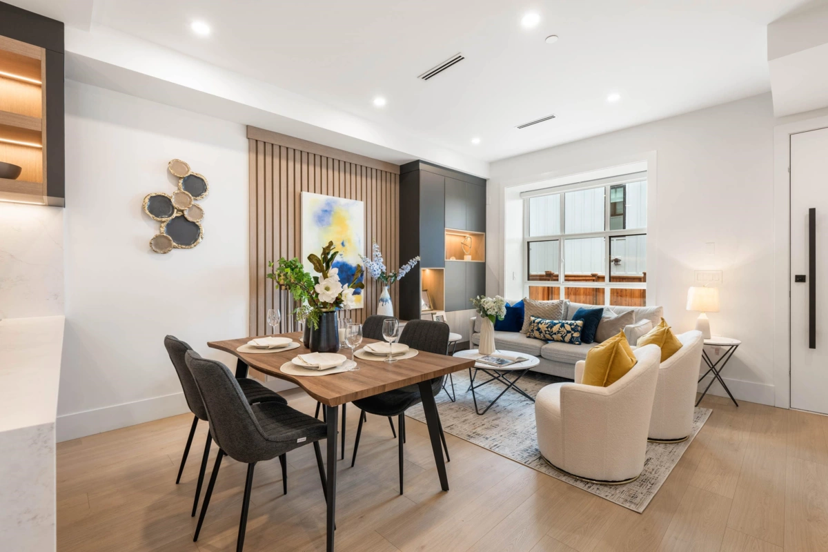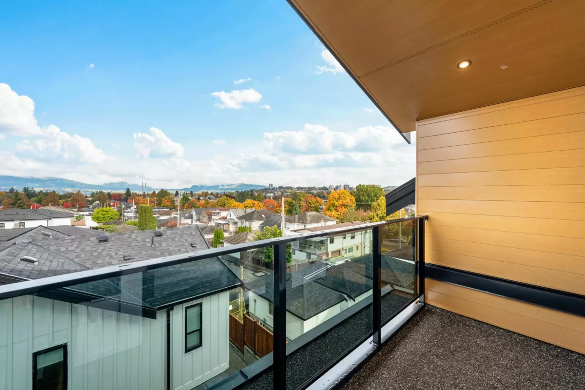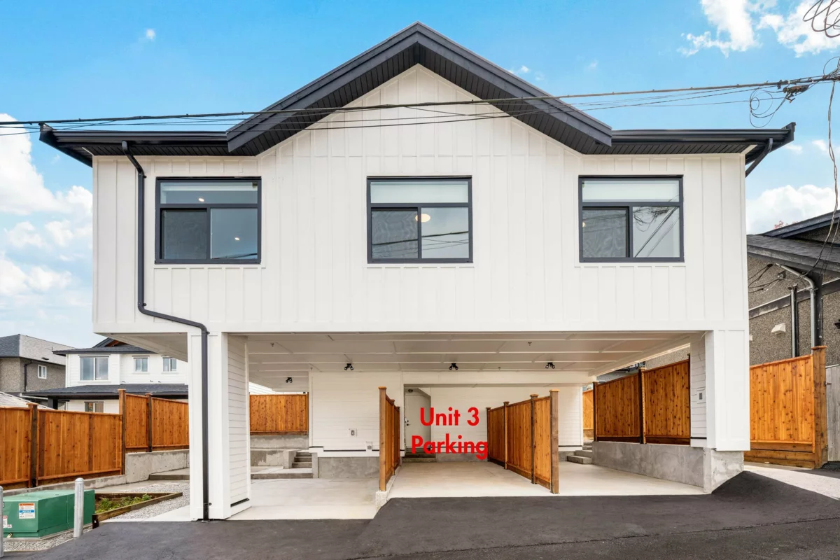 BRAND NEW 3-level BACK UNIT in a quality-built multiplex by an experienced builder, ideally located on a WIDE street in Renfrew East Vancouver With lane access, and a covered 1-CAR COVERED CARPORT. Thoughtfully designed with high-end finishes and backed by a 2-5-10 home warranty. Main floor offers a bright living room with custom cabinetry, dining area, 2-tone kitchen with s/s appliances, and a FULL BATH . Second level has 2 spacious bedrooms + full bathroom. Top level features the primary bedroom with walk-in closet, ensuite, and 2 large BALCONIES for outdoor living. Features include A/C, security cameras, quartz counters, and designer tile in all baths. Great access to downtown and major routes. Close to T&T Supermarket & PNE. Call your Realtor today!
