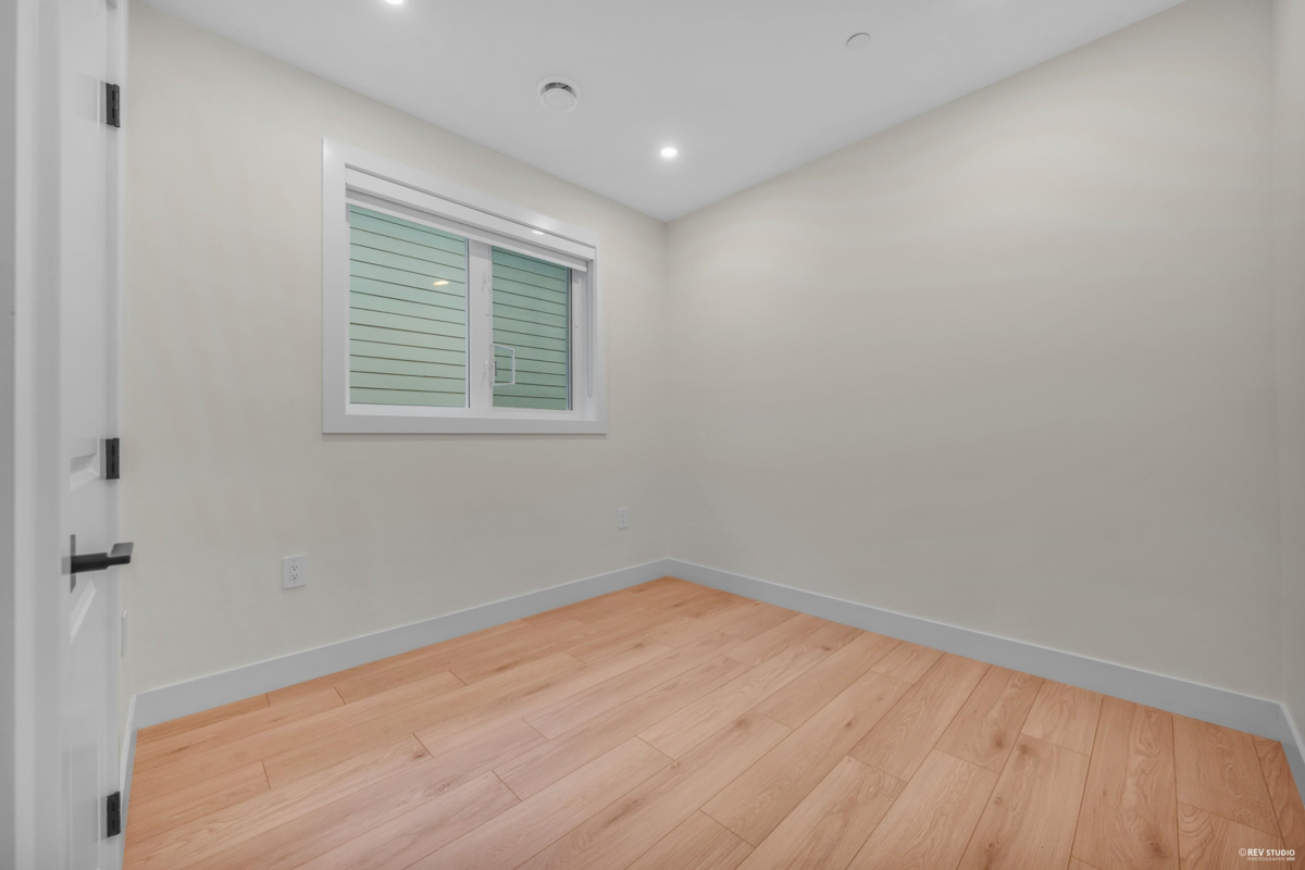 NO STRATA FEE! Modern back-unit home on the quiet side of this brand-new triplex in Joyce-Collingwood. This 2-storey home features 3 spacious bedrooms and 3 full baths, with views on the upper level and lots of natural light throughout. Enjoy a stylish living room with custom TV cabinet, sleek kitchen with S/S appliances and large island, plus A/C, HRV, heat pump, security system, EV-ready parking, and a private fenced backyard. Includes ensuite laundry, ample storage, and 2/5/10 new home warranty. Convenient location near schools, parks, and SkyTrain stations. Built by a reputable builder. Easy to show. Open House Sat. Jan. 17th 2-4pm.