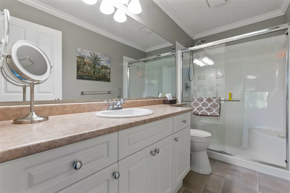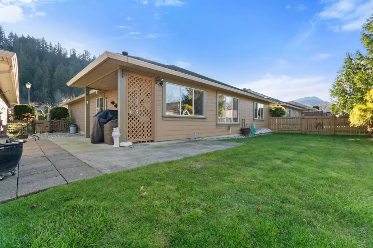 Welcome HOME to #3 in Halcyon Meadows, a prestigious gated community nestled in the heart of Sardis. This 2 bdrm, 2 bath former show home measures approx. 1406 sq.ft and is full of features you'll love including but not limited to: great room layout, spacious bedrooms, extra windows, crown moulding, geothermal heating/cooling, built-in vac. Kitchen has wrap-around island w/ breakfast bar & S/S appliances. Primary is BIG w/ extended length walk-in + ensuite. Outside boasts a private & covered patio, and large wrap-around yard that's fully fenced. Additional highlights include a dbl garage, and full crawl space for extra storage. There's a fantastic & active clubhouse (just a few steps from #3) available w/ guest suite, exercise/game rooms. RV Parking. 45+ living.