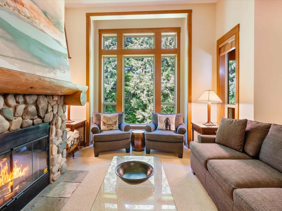 Enjoy year-round Whistler adventures from this ideally located ski-home with easy access to Lost Lake’s XC, biking & hiking trails, and steps from the Chateau Golf Course. The open floor plan welcomes natural light through a large window wall and sliding doors to a covered patio with creek sounds and a private treed outlook. Features include three well-proportioned bedrooms, a cozy fireplace, and a covered hot tub deck to unwind after mountain days. Zoned for nightly rentals with unlimited owner use, this low-maintenance retreat offers strong revenue potential and a private single-car garage. No GST.