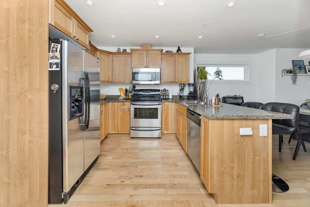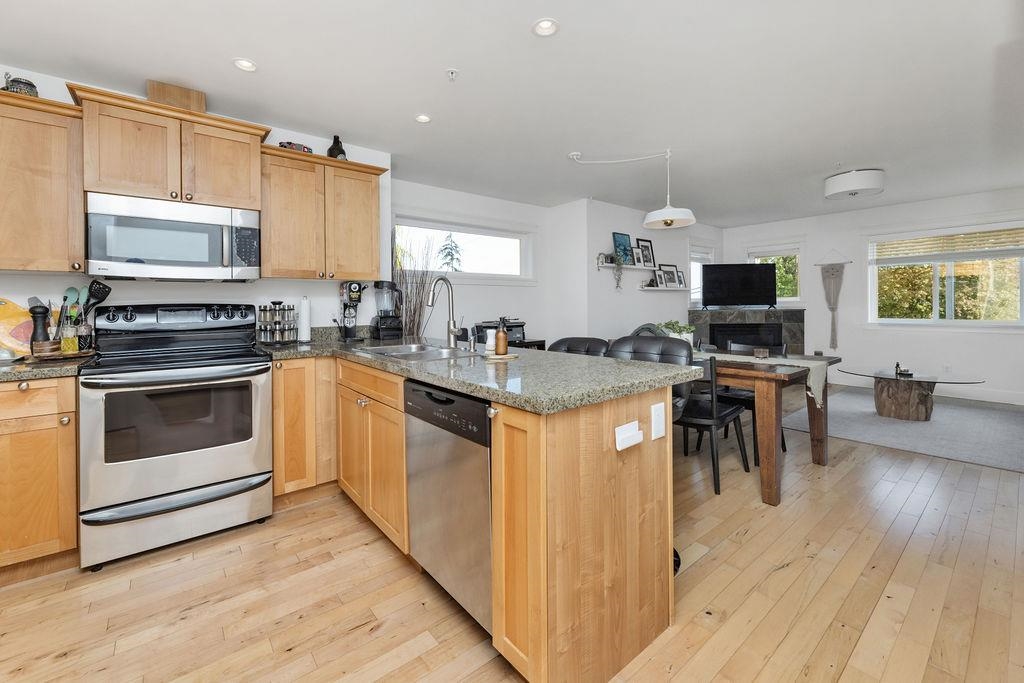 End unit townhouse with ocean and mountain views! This spacious home in the sought after Islandview Lanes development offers a thoughtful floorplan - on the main floor you will find an eat-in kitchen with granite counters, maple hardwood flooring, and a south facing living room with plenty of windows to take in the views. Upstairs offers 2 generous sized bedrooms, with a patio off of the bright and airy primary. The fully finished walkout basement offers incredible flexibility, featuring a large recreation/family room. This lower level with separate entrance and covered patio allows for a home business, or it could easily become a third bedroom with its own bathroom. Recently painted, new blinds throughout, and within minutes to shopping, cafes, and beaches. OPEN HOUSE SAT JAN 24 12-2.