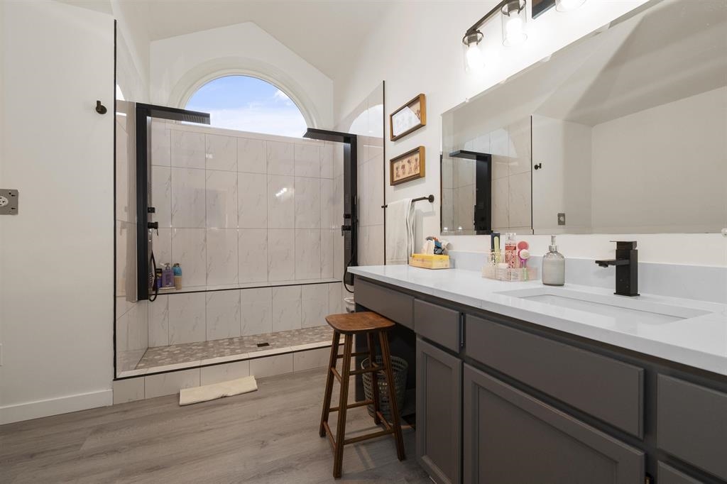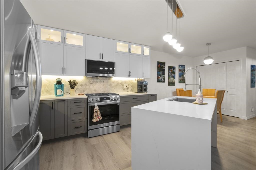 Fully renovated & stylish 2 bed, 2.5 bath townhome in a unique 55+ gated community. This one brings the wow — custom kitchen with quartz counters, stainless steel appliances, gas stove & ambient lighting. Open-concept living with vaulted ceilings, new gas fireplace, fresh paint, vinyl plank floors & updated lighting throughout. All bathrooms fully redone. Upstairs: 2 beds, 2 baths including a spacious primary with WIC & luxe ensuite featuring dual rain shower, vaulted ceiling & roughed-in laundry. Double garage, private courtyard & lush grounds. Retirement never looked this good.