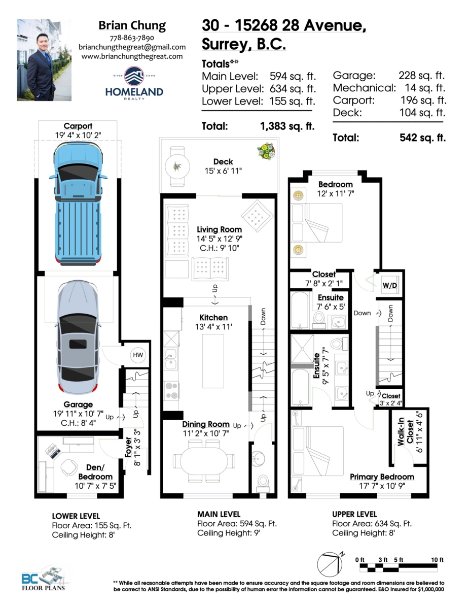 Welcome to "Old School"! This well-loved home offers a thoughtful floor plan with 2 bedrooms + den and 2.5 bathrooms. Enjoy a large kitchen with an island, spacious living and dining rooms, and a walk-in closet in the master bedroom. All bedrooms, including the den, comfortably fit queen-sized beds. Additional features include a sleek electric fireplace and a tandem garage. Conveniently located in South Surrey, you'll find excellent restaurants, shopping, transit, Sunnyside Park, and a swimming pool all within walking distance. Plus, enjoy easy access to Highway 99. This is a must-see!