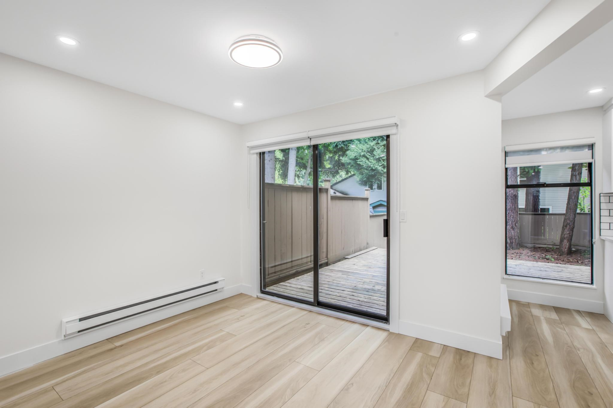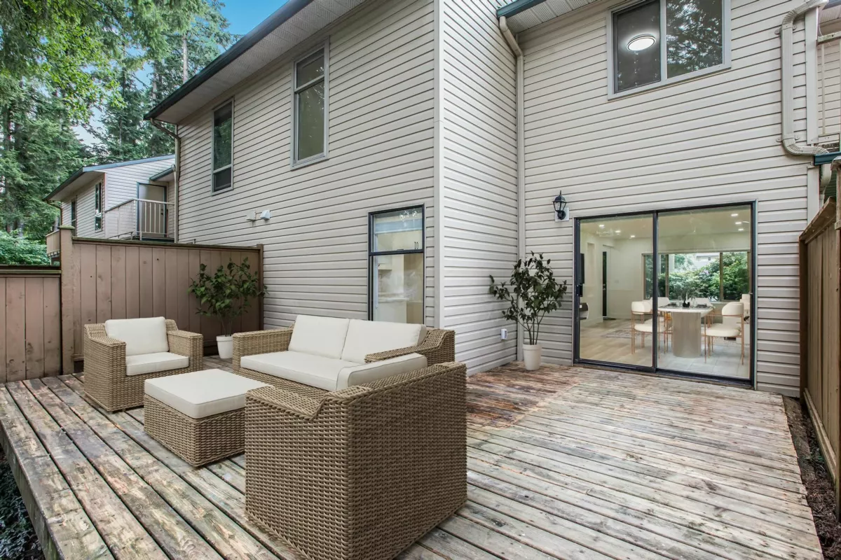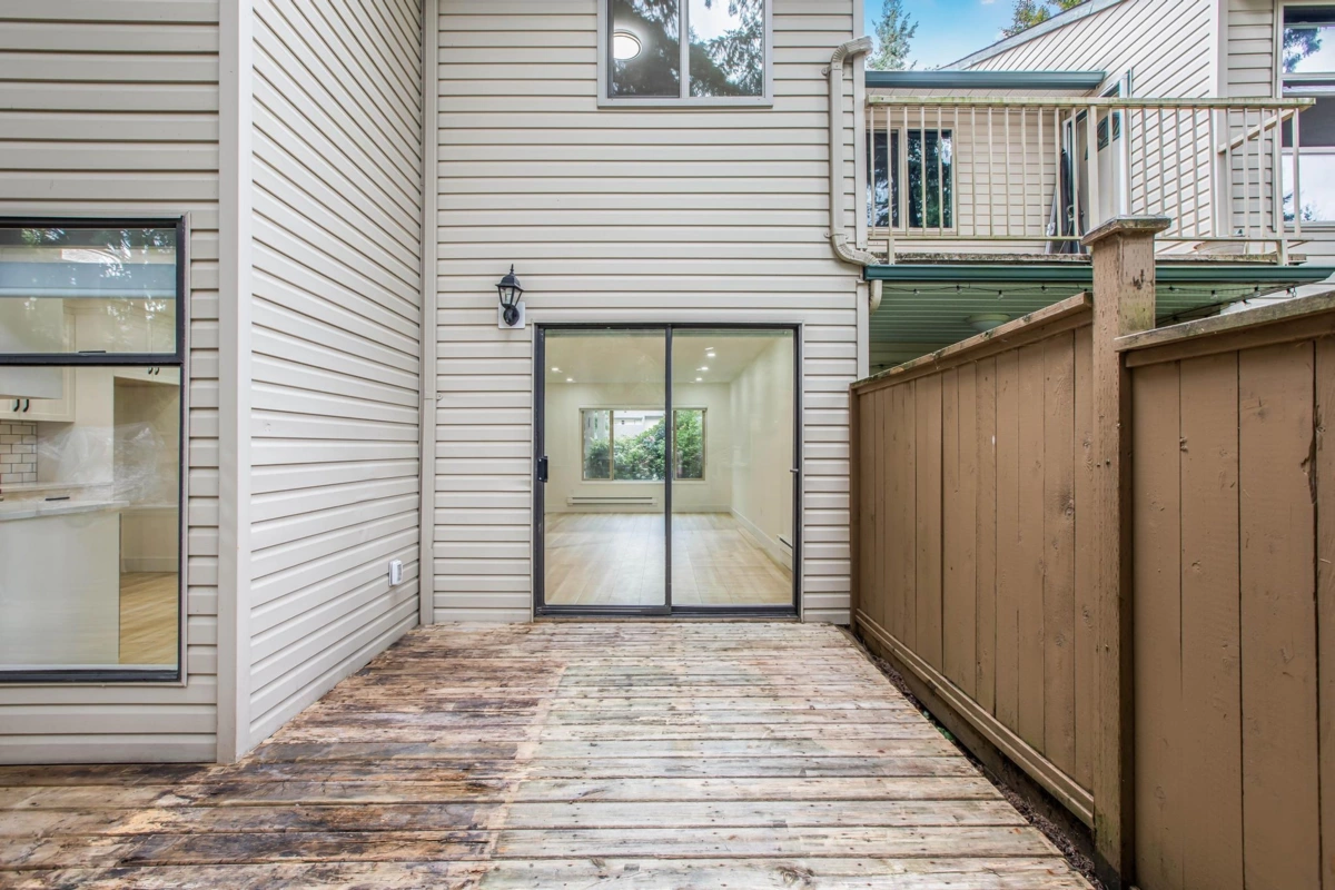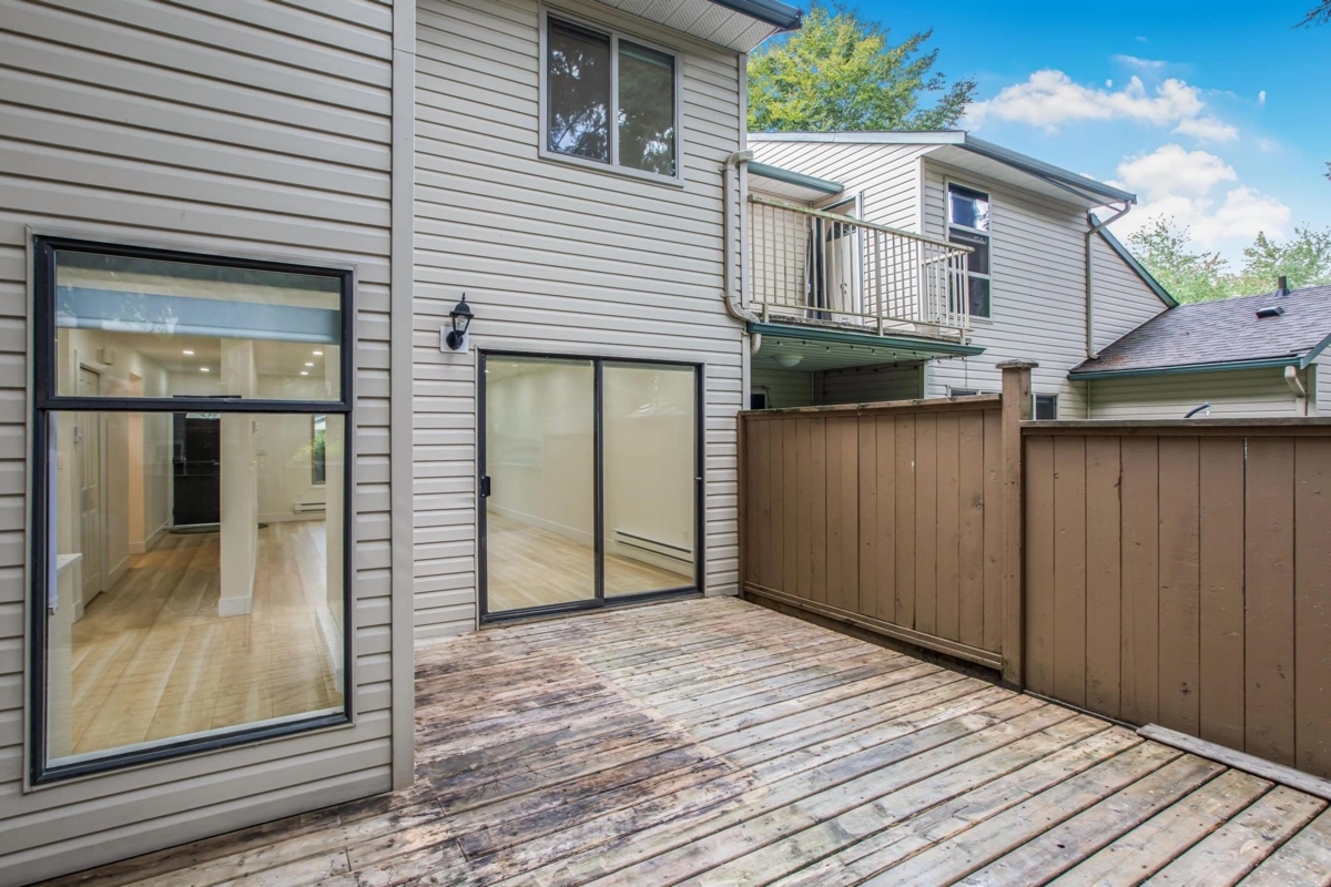 This renovated townhouse feels like a detached house! The location can't be beat- located across the street from WJ Mouat Secondary school! This home has a fenced yard and large patio. Inside, no expense has been spared in updating the home. Check out the bright kitchen with quartz countertops, custom cabinets, and stainless steel appliances. The spacious living and dining rooms overlook the quiet patio that's perfect for entertaining. A bathroom and storage room complete this level. Upstairs, there are 3 bedrooms, a large laundry room, and a gorgeous bathroom with a walk in shower and marble surround-it feels like a hotel! There's even a private sun deck off the primary bedroom. Other great features include many led pot lights and new flooring throughout.