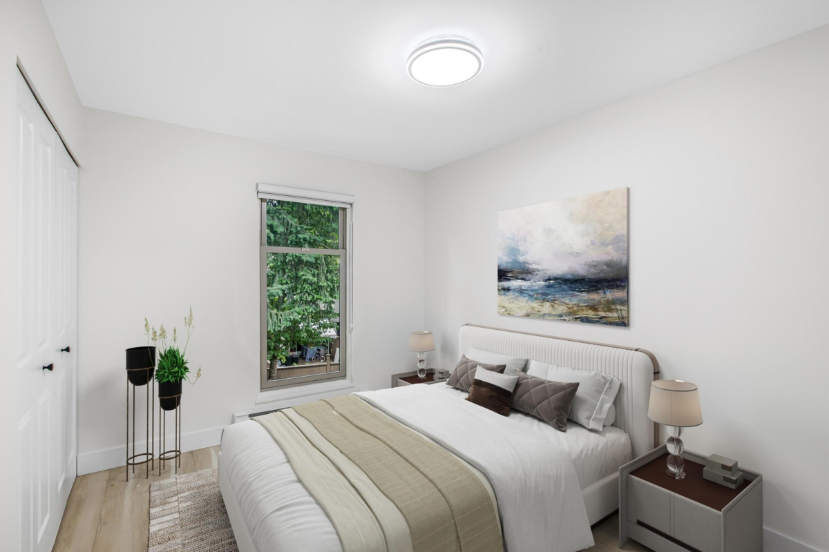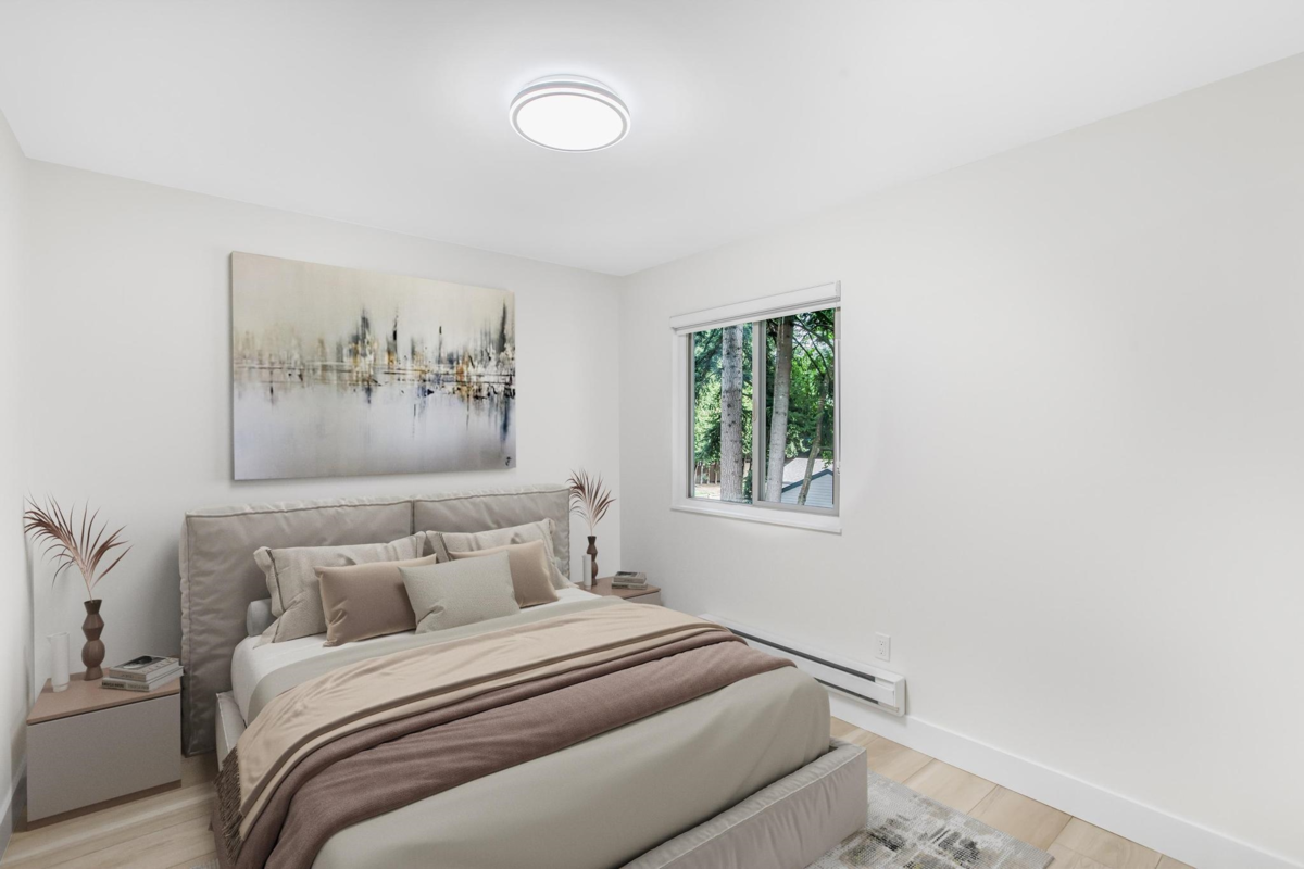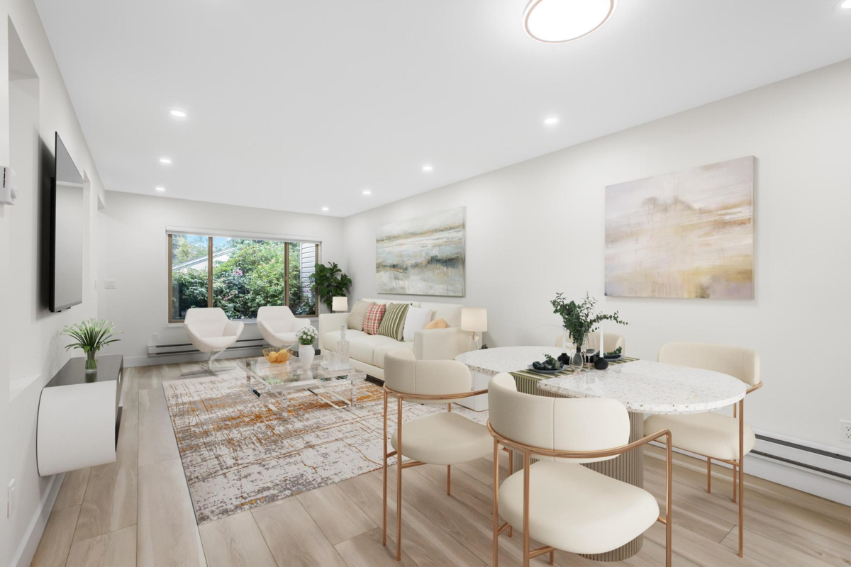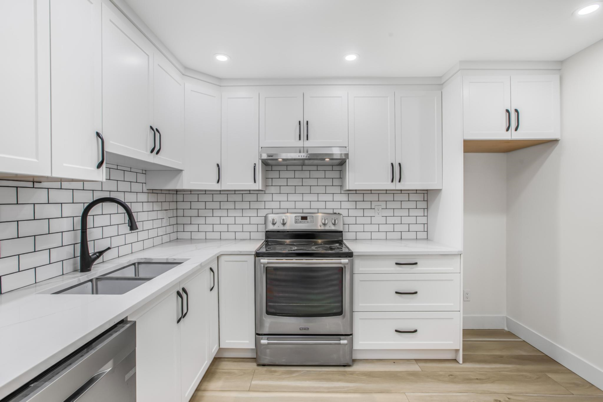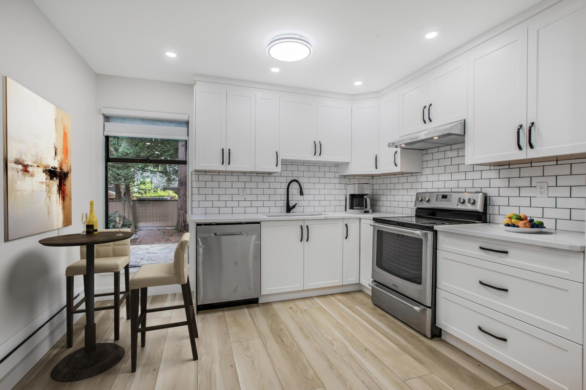 This renovated townhouse feels like a detached house! The location can't be beat- located across the street from WJ Mouat Secondary school! This home has a fenced yard and large patio. Inside, no expense has been spared in updating the home. Check out the bright kitchen with quartz countertops, custom cabinets, and stainless steel appliances. The spacious living and dining rooms overlook the quiet patio that's perfect for entertaining. A bathroom and storage room complete this level. Upstairs, there are 3 bedrooms, a large laundry room, and a gorgeous bathroom with a walk in shower and marble surround-it feels like a hotel! There's even a private sun deck off the primary bedroom. Other great features include many led pot lights and new flooring throughout.