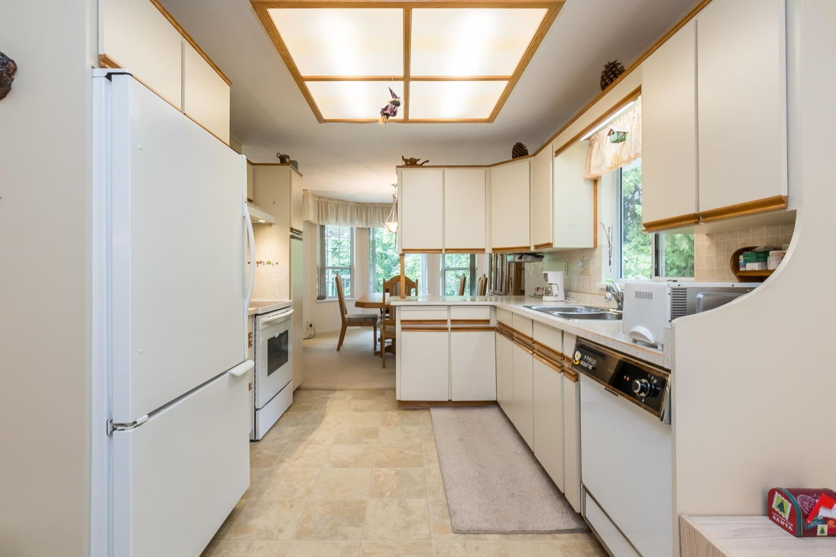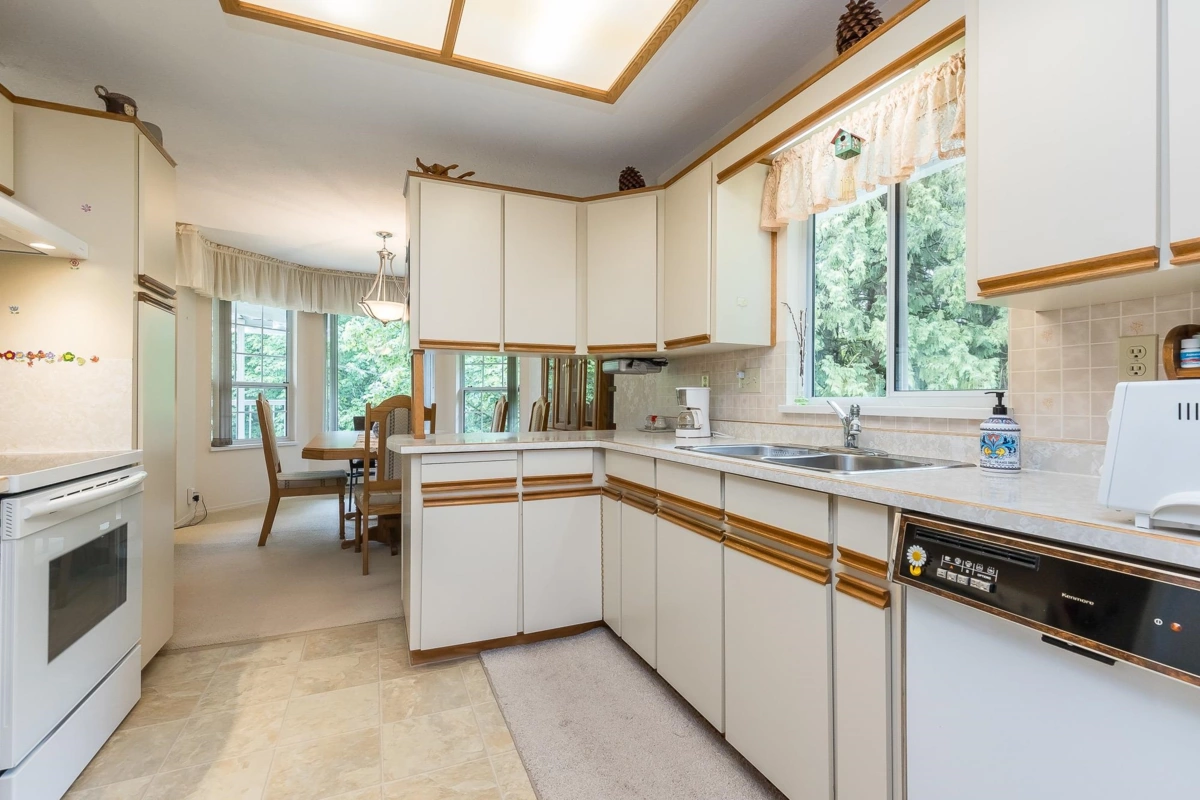 SPACIOUS UPPER END UNIT TOWNHOME IN ONE OF THE BEST LOCATIONS IN THE COMPLEX!! Very Private & Peaceful nestled beside Lush Greenspace & View of a Creek from your Kitchen & Family room area. Comes with 2 patios & your own Private Entrance! This home has been Lovingly cared for by the owner for over 30 years! Offers an Open Floor Plan with Gigantic Living Room, 2 Bdrms & 2 Baths & large separate storage room situated on the patio for your convenience. Bonus 2 parking stalls! Complex offers RV Parking, Amenity Room with Workshop & Guest Suite.Great Location! Within minutes to Seven Oaks Mall, Restaurants & Mill Lake! Age Restriction 55+ Allows 1 Cat.