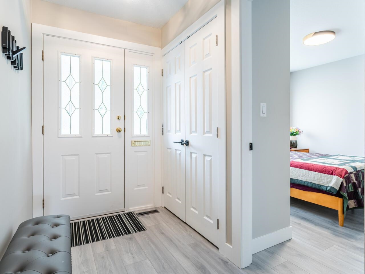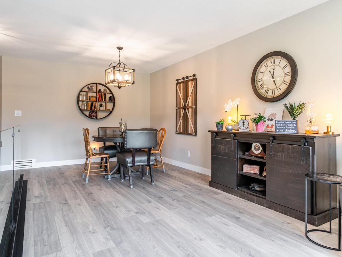 Welcome to Meadowbrook Estates! This 2700 sq. ft. updated home backs onto green space and Nicomekl trails. Main level features laminate floors, a bedroom, stunning marble bathroom, laundry, and an open living/dining area. The new kitchen boasts white shaker cabinets, black stainless appliances, and a marble island. A gas fireplace and sliding doors lead to a sundeck with peaceful views. The main floor primary bedroom includes a walk-in closet and elegant en suite. Downstairs offers a huge family room with fireplace, large bedroom, updated 3-piece bath, flex space, utility room with high-efficiency furnace and on-demand water, plus a workshop and storage. Quiet complex. One spayed/neutered pet (max 40 lbs) allowed.