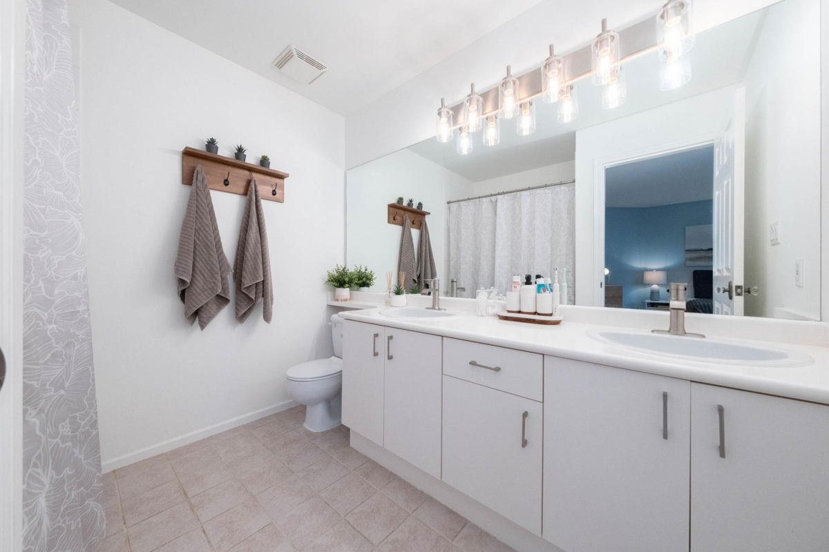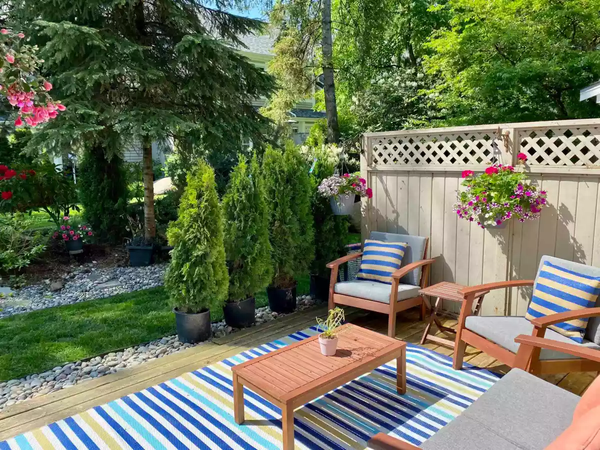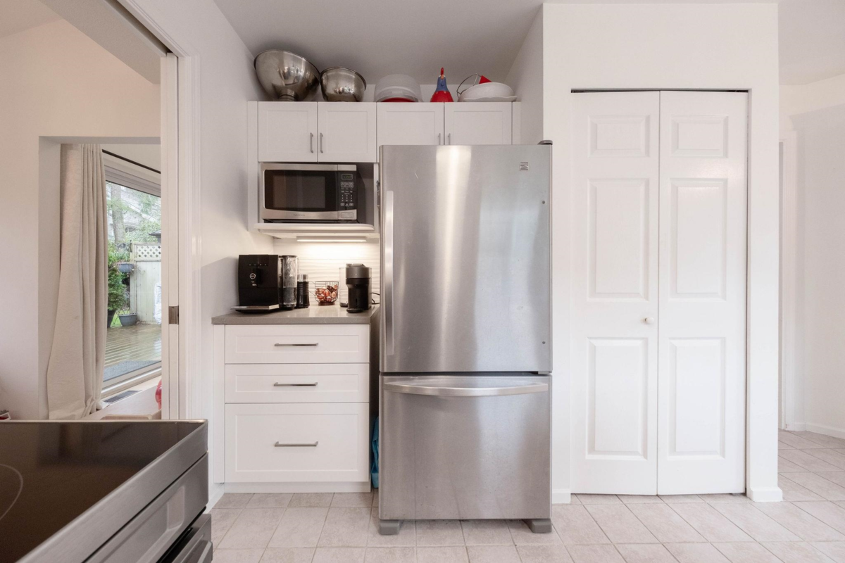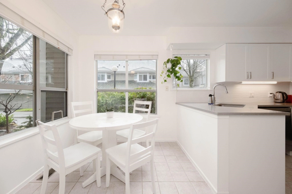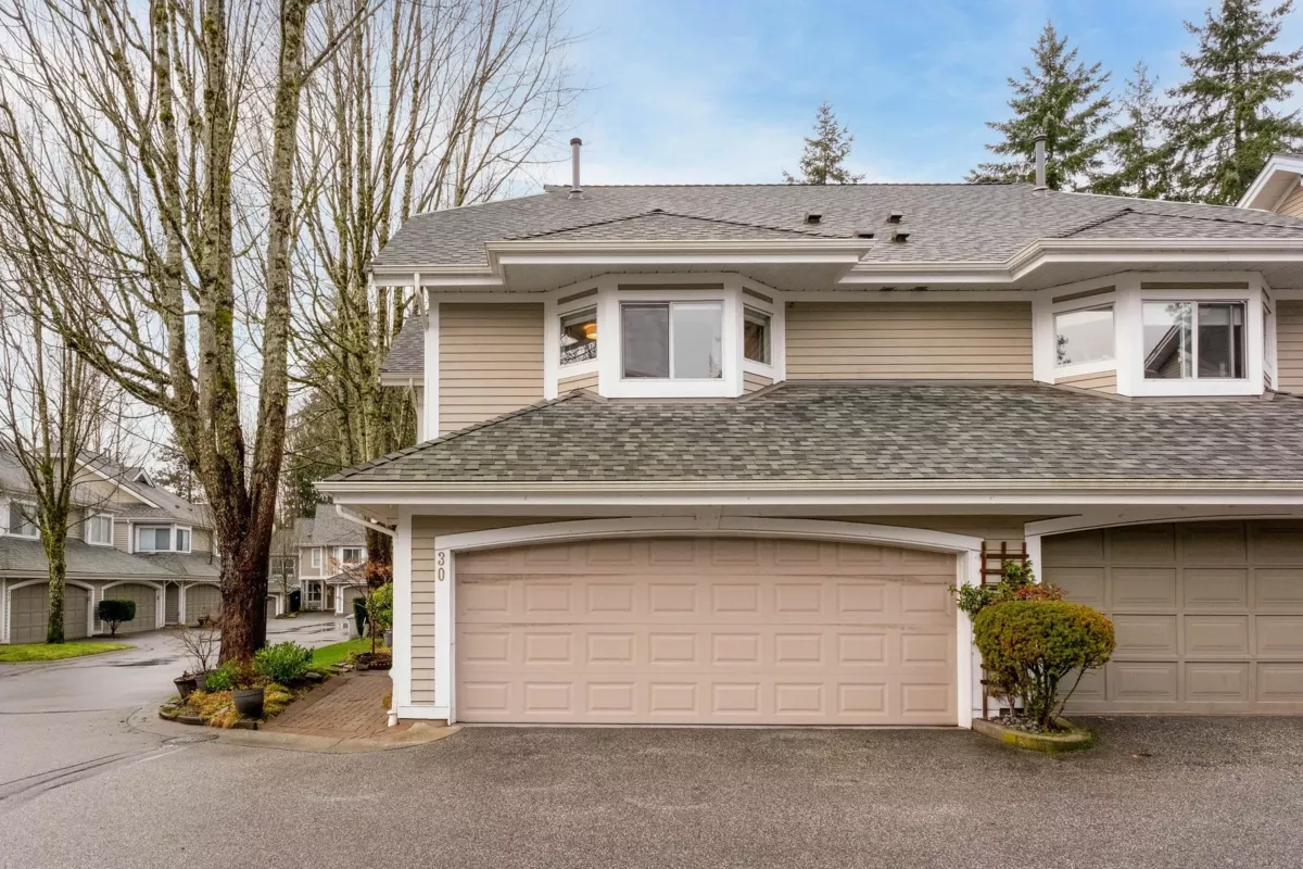 Welcome to this immaculate semi-detached corner unit home ! The spacious 1588 sq ft townhome features vaulted 30 ft high ceilings in the living room, 3 beds, 2 1/2 baths and a 400 sq ft double car garage with a new insulated door and epoxy flooring! The home is fresh and bright with a renovated kitchen featuring new appliances and granite counter tops, newer high efficiency furnace and newer, oversized hot water tank. The roof is approximately 4 years old and most closets have built in California Closet shelving. A privacy row of cedars adds to the ambiance of the patio and spacious outdoor area with the biggest and best garden in the complex, perfect for barbecues. This well run complex is child and pet friendly with a great community feel. Just move in and enjoy!