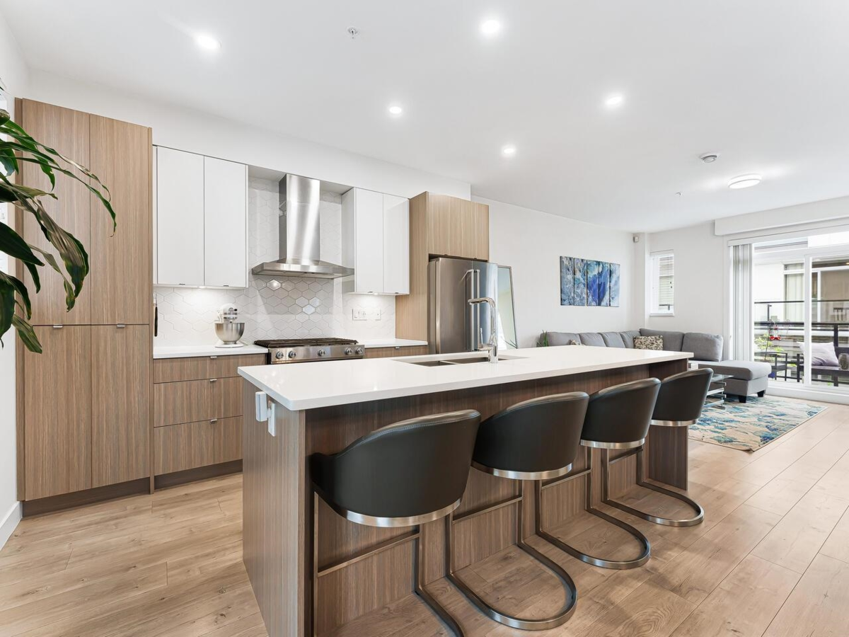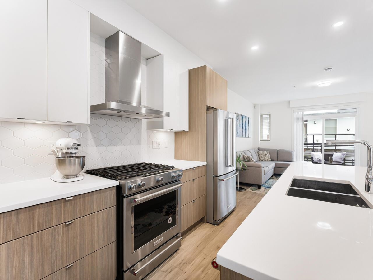 Newer, LUXURIOUS, QUALITY built by Isle of Mann, STUNNING townhouse is one not to be missed! This PERFECTLY laid out SOUTHERN side end unit with TONS of windows on three sides for MEGA light in the BEST location in the complex right beside the amenity center with visitor parking stall right beside it is one for your list! GOURMET kitchen with GAS range, MASSIVE center island, quartz counters, half bath on main, laundry on top floor, HIGH ceilings and gas BBQ hook up on the deck are just some of the ingenious features! BEAUTIFUL artificial turf in a fully fenced yard and HUGE, AWESOME garage with even more windows and epoxy flooring are just a few more! 2 pets total cats or dogs with no size restriction! A block away from all the CONVENIENT shops of the NEW Willoughby Town Centre area!