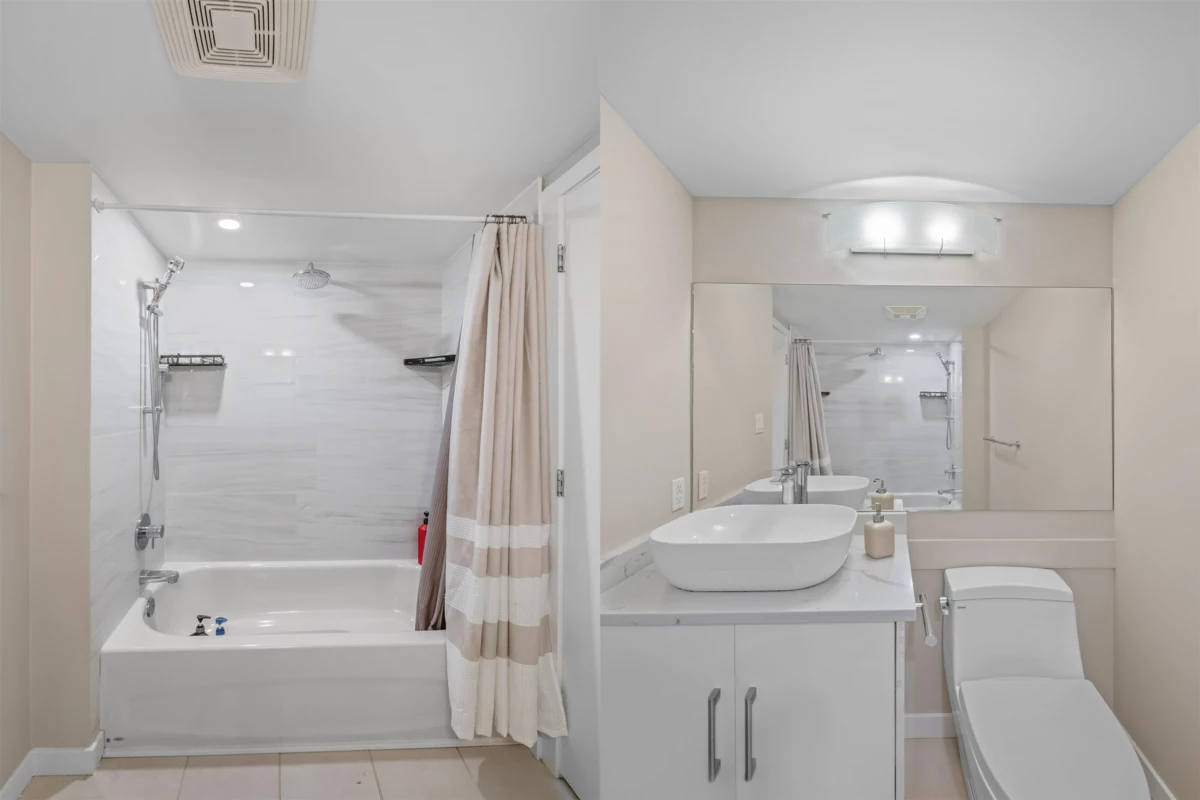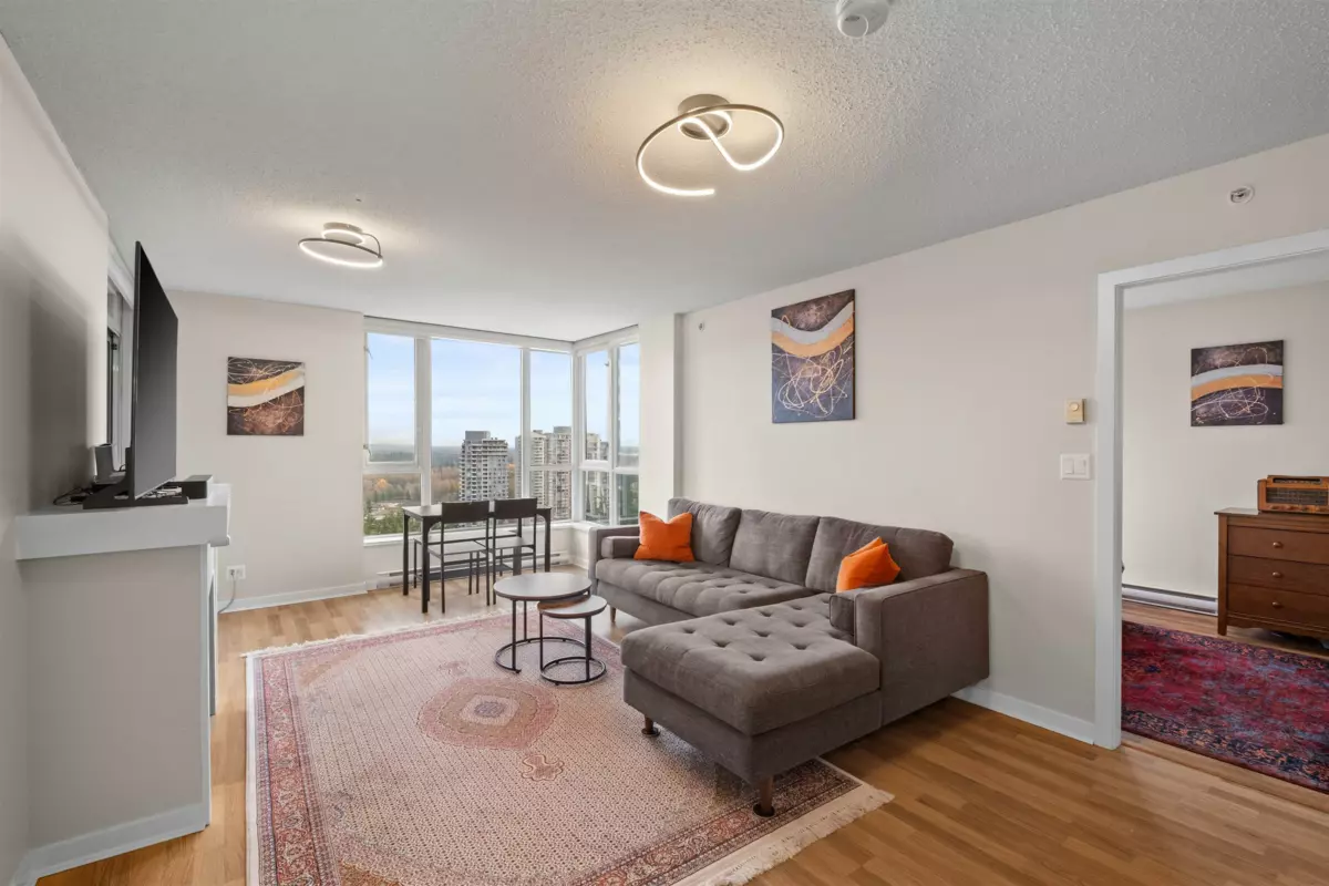 Welcome to Obelisk! This modern 2-Bed + Den home sits on the quiet side of the building, offering unobstructed views of Mount Baker and the city skyline. The bright, open layout features floor-to-ceiling windows, a chef-inspired kitchen with abundant cabinetry, and a spacious Den that can function as a 3rd bedroom or home office. Both bathrooms are tastefully updated. Enjoy unmatched convenience- just minutes to SkyTrain, Douglas College, Coquitlam Centre, Lafarge Lake, schools, parks, and the Aquatic Centre. Amenities include a fitness centre, sauna, recreation room, and secure bike storage. Complete with a large parking stall and storage locker, this home is a must-see! *Den Photos are Virtually Staged*