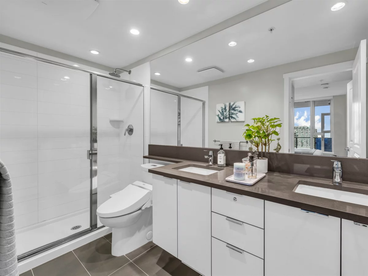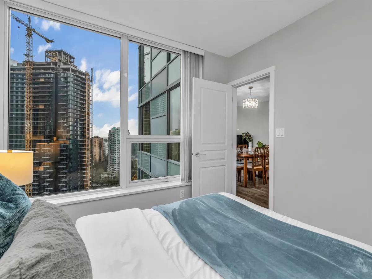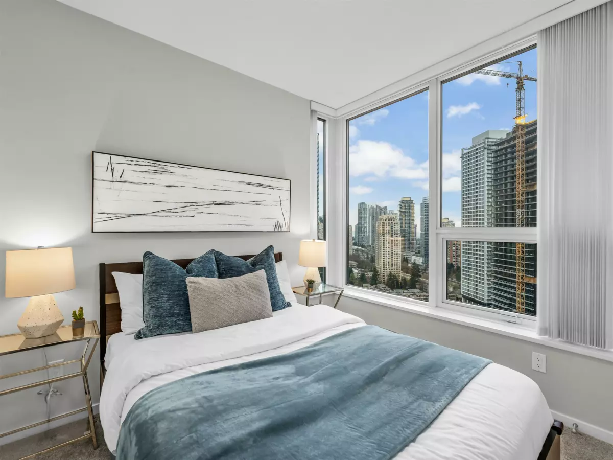 Central Park life at Aldynne on the Park by Polygon with South/East facing! This high-floor corner suite offers a panoramic city views and Fraser River water view. This brand new 2 BRM+2Bath luxury condominium features high end stainless steel appliances, AIR CONDITIONING.The ideal split-bedroom layout provides excellent privacy between Primary bedroom and guest bedroom. Primary bedroom also features a spacious walk-in closet. 1 parking stall and 1 storage locker Included. EV charging is available. Next to Central Park, close to Metrotown shopping centre, Crystal Mall, Patterson skytrain station, public transport, grocery and cuisine. Catchment school Maywood Elementary & Burnaby South Secondary.