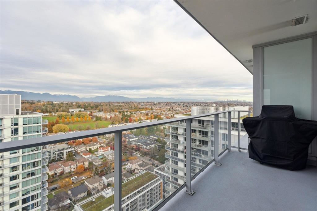 30th floor VIEWS. This bright 1 Bed & 1 den + additional office nook offers unobscured 180 degrees North-facing mountain views to wake up to. 531SF of well designed space, 9ft ceilings, floor-to-ceiling windows and efficient open layout are perfect for students or young professionals. Layout includes a dedicated work-from-home space, ideal for modern living. Enjoy premium finishes with Blomberg S/S appliances, Grohe faucet, passive heating/cooling system. Concrete Highrise MC2 by Intracorp. Yes 1 parking stall and 1 storage locker! Marine Drive Skytrain Station right below, T&T, banks, Cineplex, restaurants, and plentiful amenities! Skytrain to downtown in 15 mins. Catchment Churchill Secondary & JW Sexsmith school. Contact today for a private viewing! Open house JAN 17 SAT 2-4PM